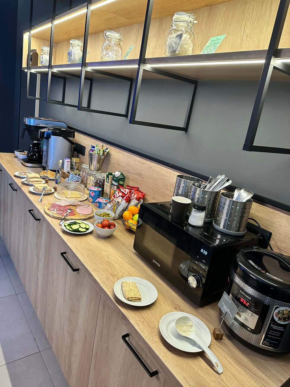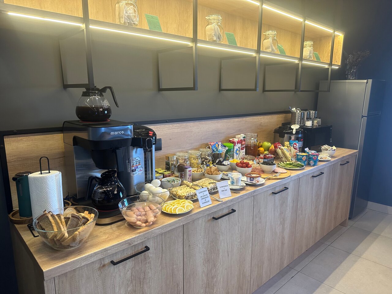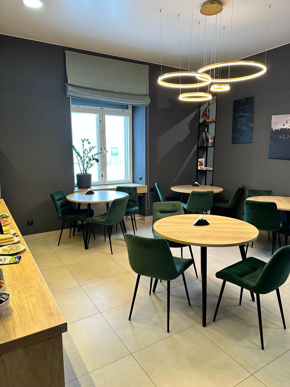 - Удобное расположение (центр, рядом остановки, кафе, магазины).; Наличие мини-кухни.; Белые постели.; Разнообразные завтраки.; Вкусные завтраки.