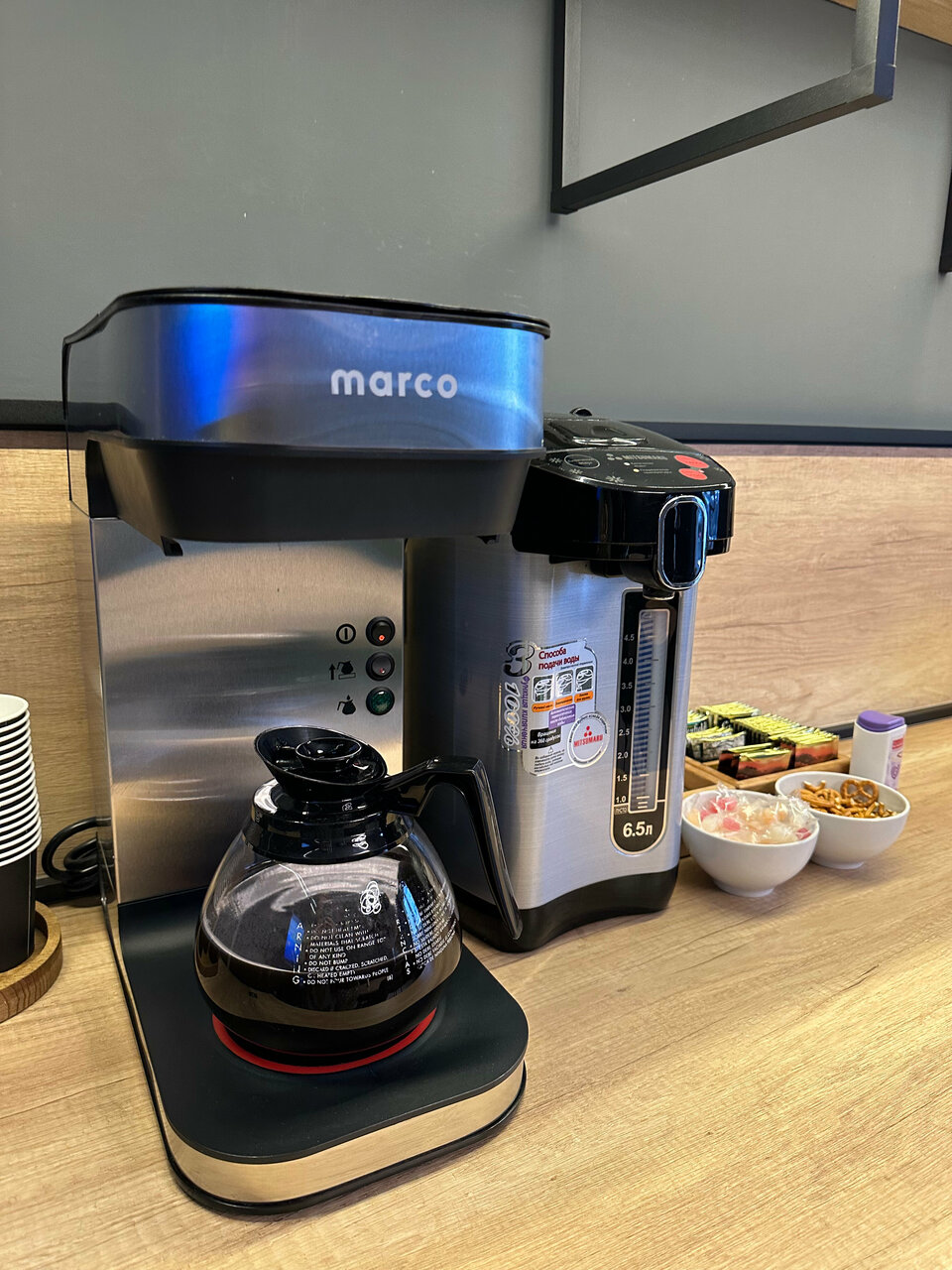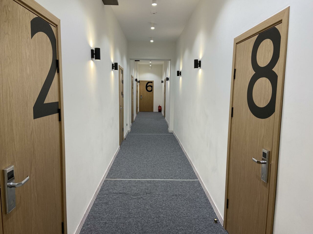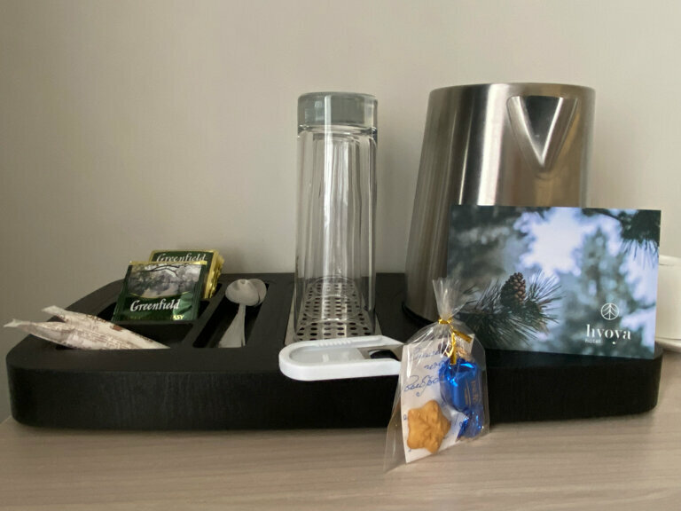 Хороший уютный отель на 8 номеров. Все необходимое есть: полотенца, банные принадлежности, чайник, чашки, чай, сахар, плотные шторы. Завтраки разнообразные, зона с чаем, микроволновкой, холодильником и вкусняшками. Персонал отзывчивый и позитивный. Рядом автобусные остановки, кафе/рестораны,магазины.