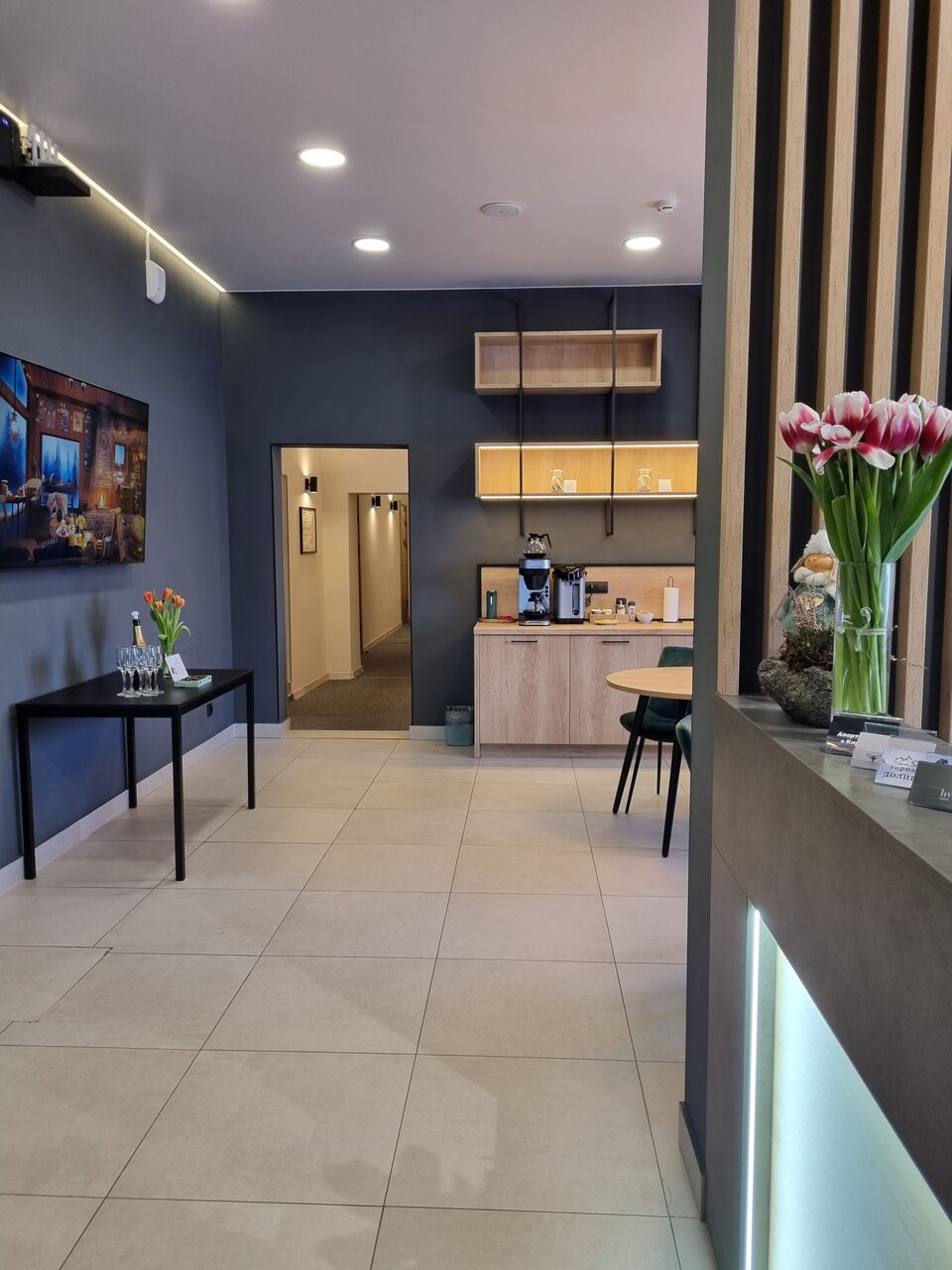 Небольшой отель. Очень чисто, тепло и комфортно. Номер большой , удобный. Кровать большая, белье , подушки и одеяло комфортные. Отличное решение это мини кухня-столовая- холл где можно отдохнуть, попить чай в любое время. Завтраки хорошие. Персонал очень гостеприимный и всегда готов прийти на помощь. Есть витрина с сувенирами.)