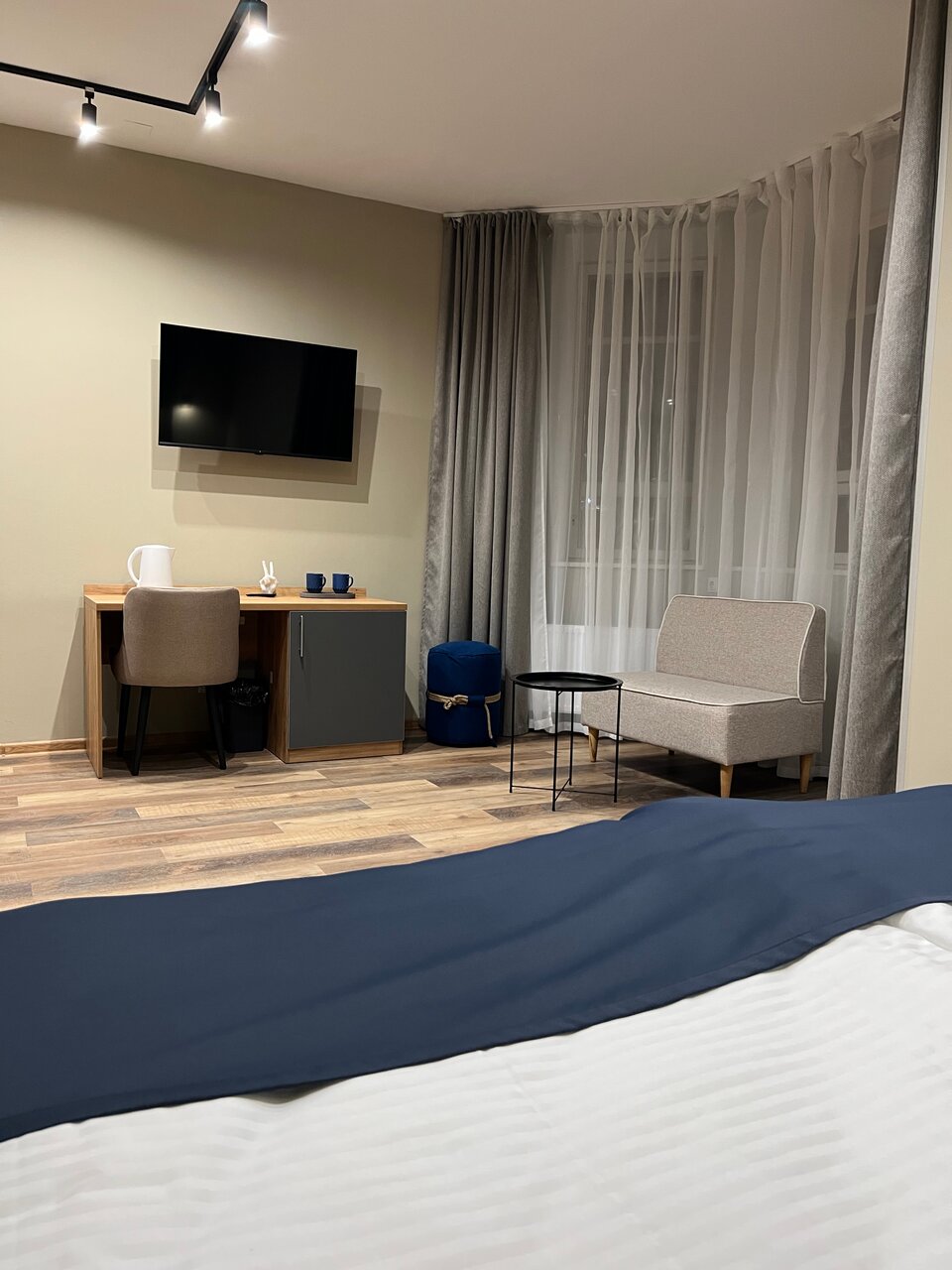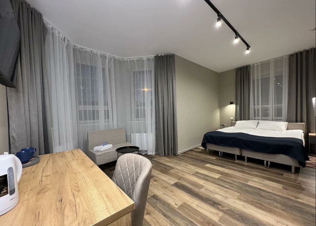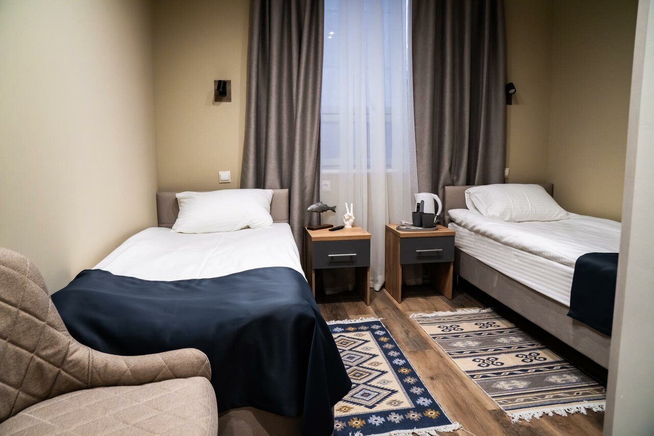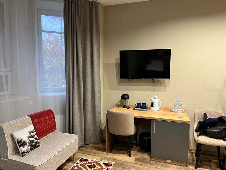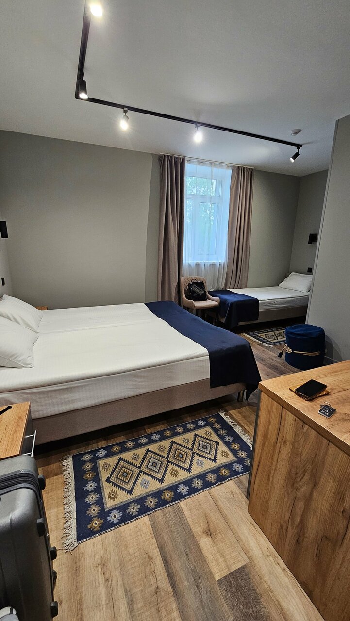 Отель понравился. Не в центре, но на такси всё в районе 7-15 минут. Чистый, номер 211 (двухместный с одной большой кроватью) — просторный. Постельное белье и полотеца хорошего качества. Тепло, одеяла хорошие. В номере чайник и чай. В коридоре кулер с питьевой водой. Очень понравилось, что есть индивидуальные наборы со щёткой и зубной пастой. Не во всех 4ках предоставляются. Завтраки с 7 до 10. Голодными не уйдете, но без изысков. Как пожелание, в пост кладите чуть больше каш без молока ( быстрого приготовления) и фрукты. Лифта нет. На втором этаже отличная игровая зона для малышей. Относительно других мест неплохая звукоизоляция. В общем и целом довольна, что остановилась в этом отеле.