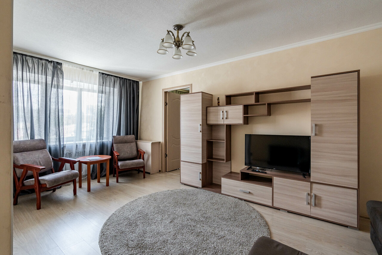 Номер с двумя спальнями, собственной кухней, душем и туалетом. В номере имеется всё: посуда, холодильник, микроволновка, плита, сплит-система и LCD телевизор с Алисой, свежее бельё и полотенца.