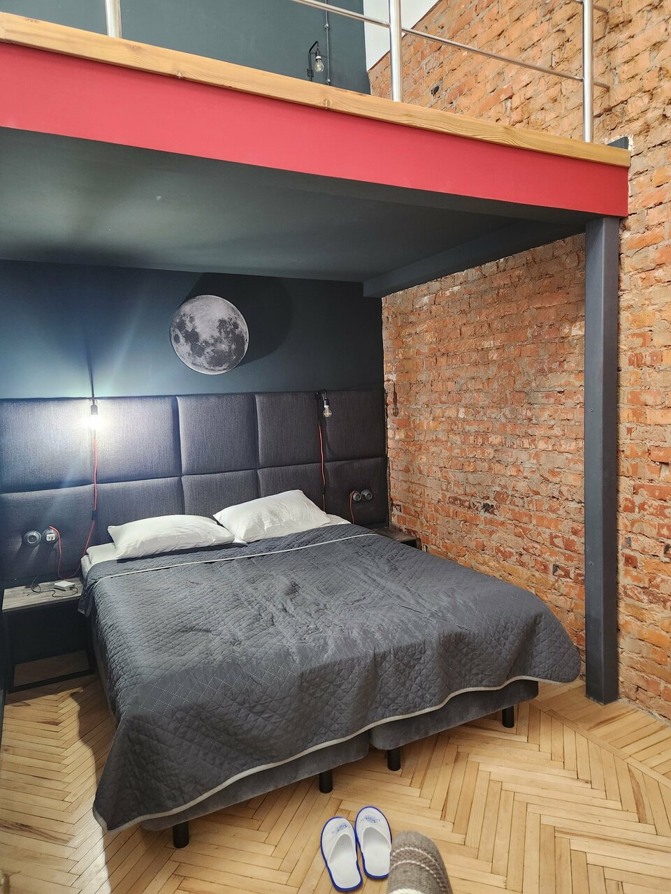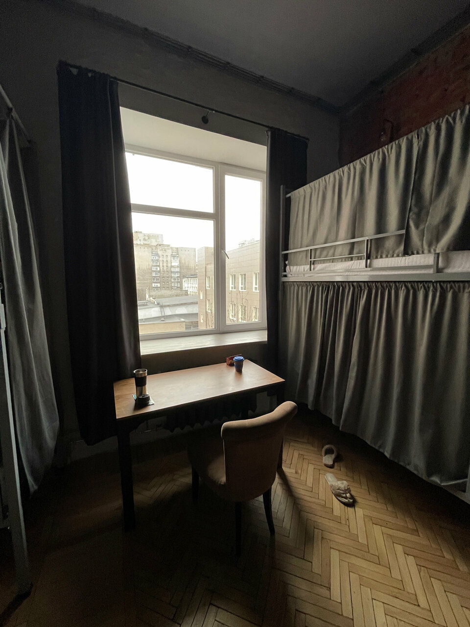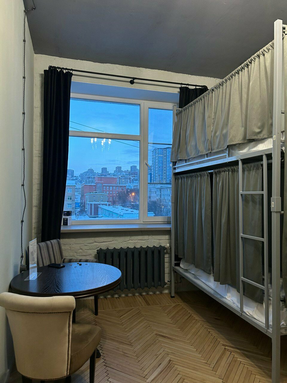 Хороший вариант, если нужно провести одну ночь ( говорю про часть, относящуюся к хостелу). Нет претензий ни к чистоте, ни к новизне обстановки, ни к расположению (недалеко от вокзала). Замечательная идея создать личное пространство для каждого с помощью штор на кровати. Но : кровать скрипела от малейшего вздоха, не то что движения; дверь скрипела чуть поменьше. Также на кухне очень мало места для того, чтобы присесть и поесть: узкая барная стойка с 3мя табуретами и два мягких стула. В комнате есть стол, но почему-то всего один стул. Для меня, во всяком случае , хостел это не только место где можно поспать, но и пообщаться с людьми, и приготовить еду, чтобы там же её съесть с достаточным комфортом. Хотя, возможно, я и ошибаюсь в чём — то.