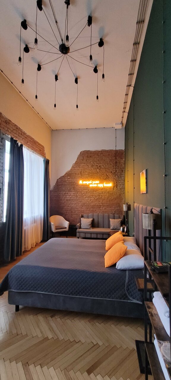 Классный интерьер! Стильно! В номере было прохладно, несмотря на то, что стоит обогреватель. На кухне на хватает маленькой электроплиты. Администраторам хотелось бы пожелать быть более приветливыми)