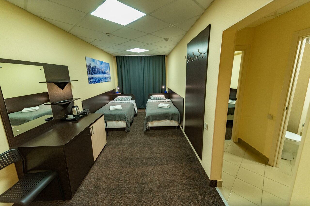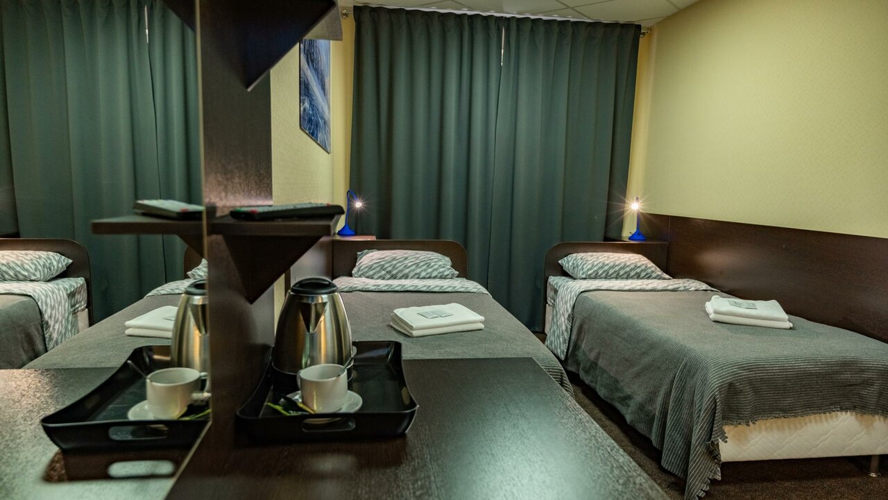 Двухкомнатный номер с 3 раздельными кроватями и санузлом. Завтрак включен.