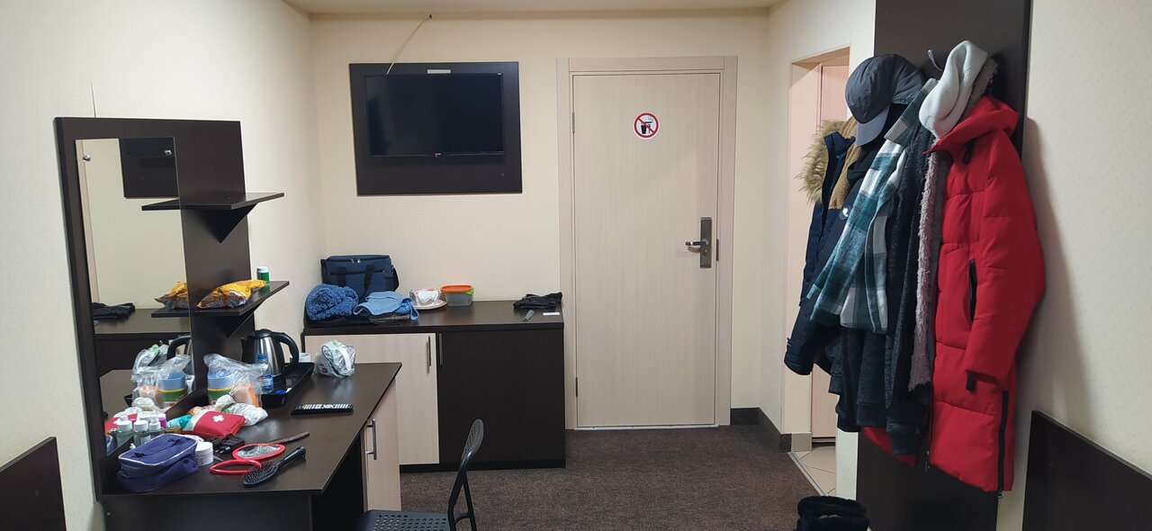 - Хорошая техническая оснащённость (чайник, телевизор, фен).