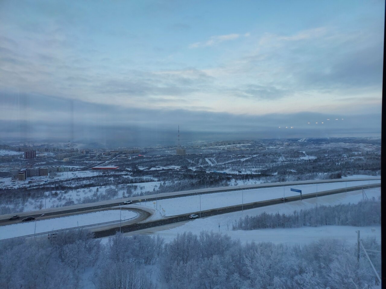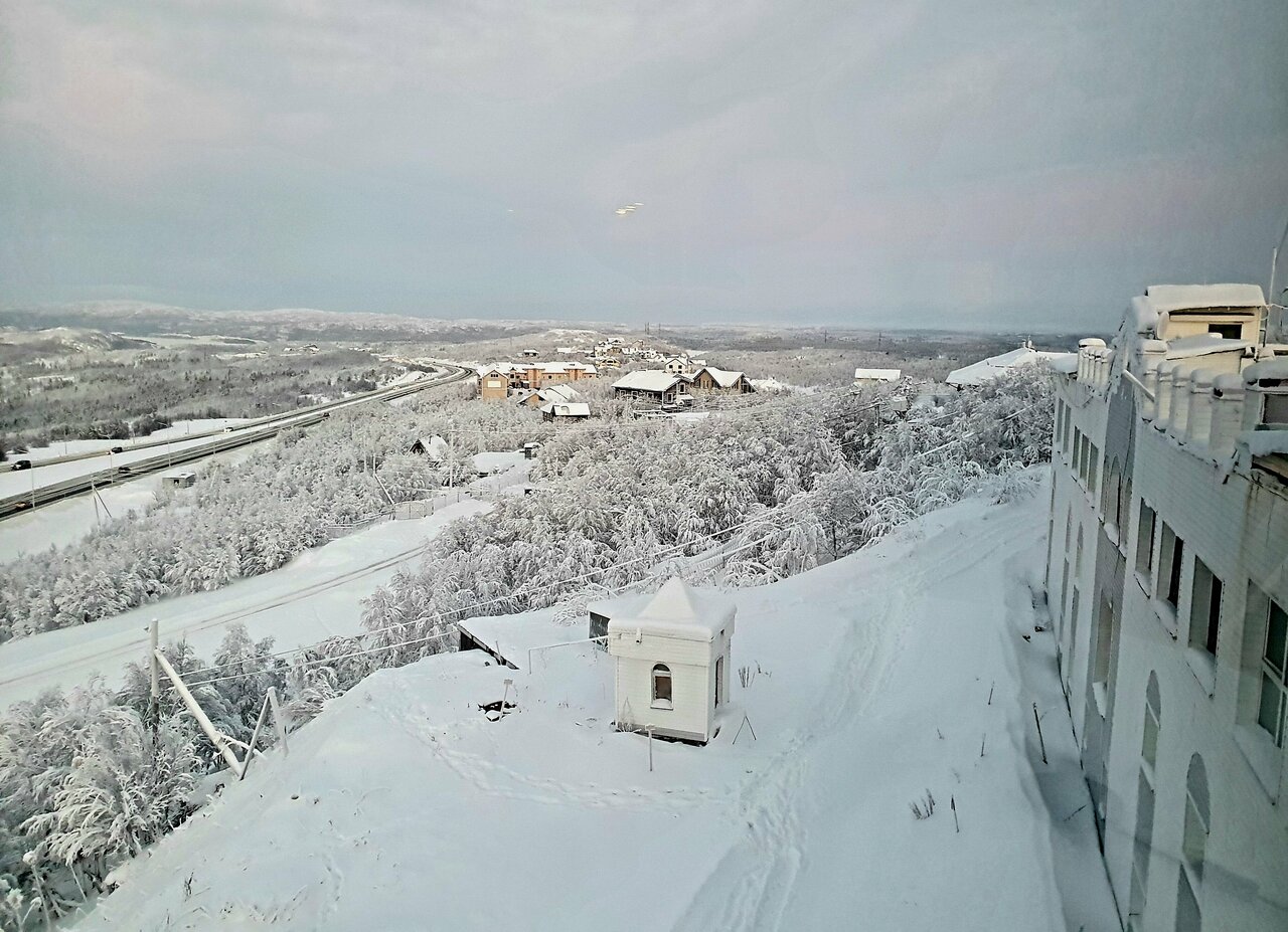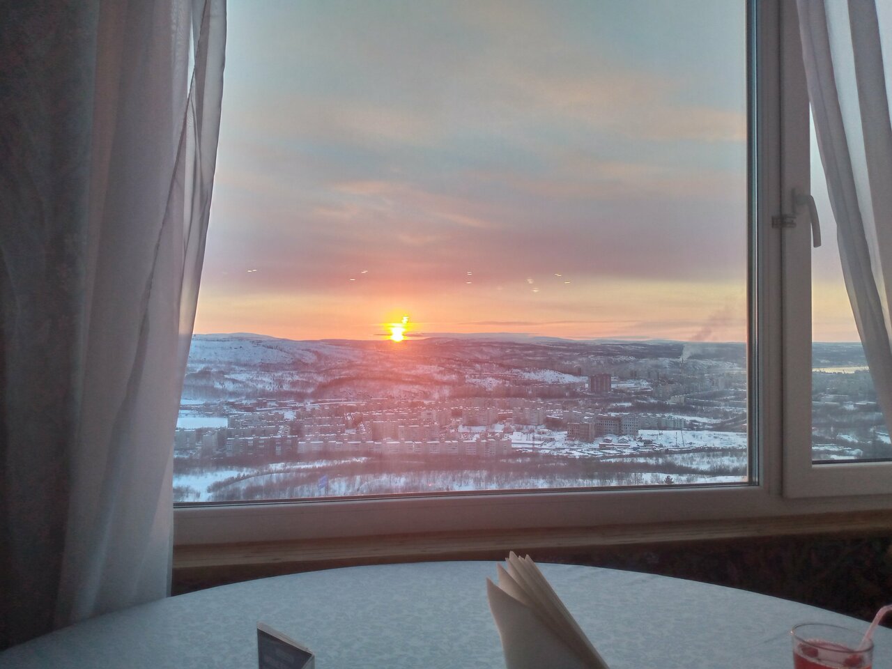Панорамный вид на Мурманск. +бассейн. Есть остановка общественного транспорта, но в город удобнее выбираться на такси.