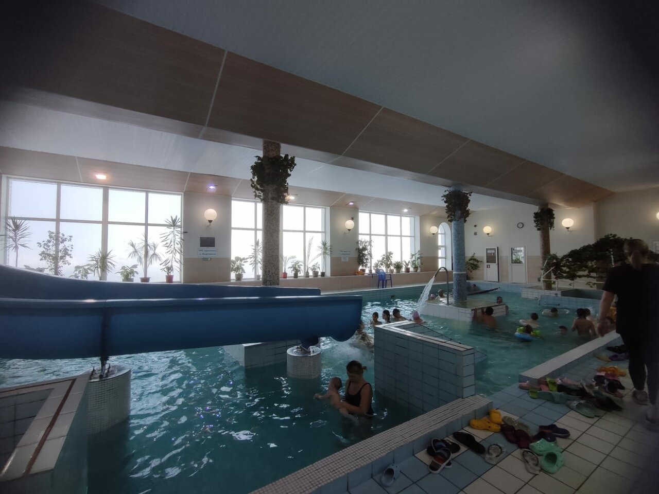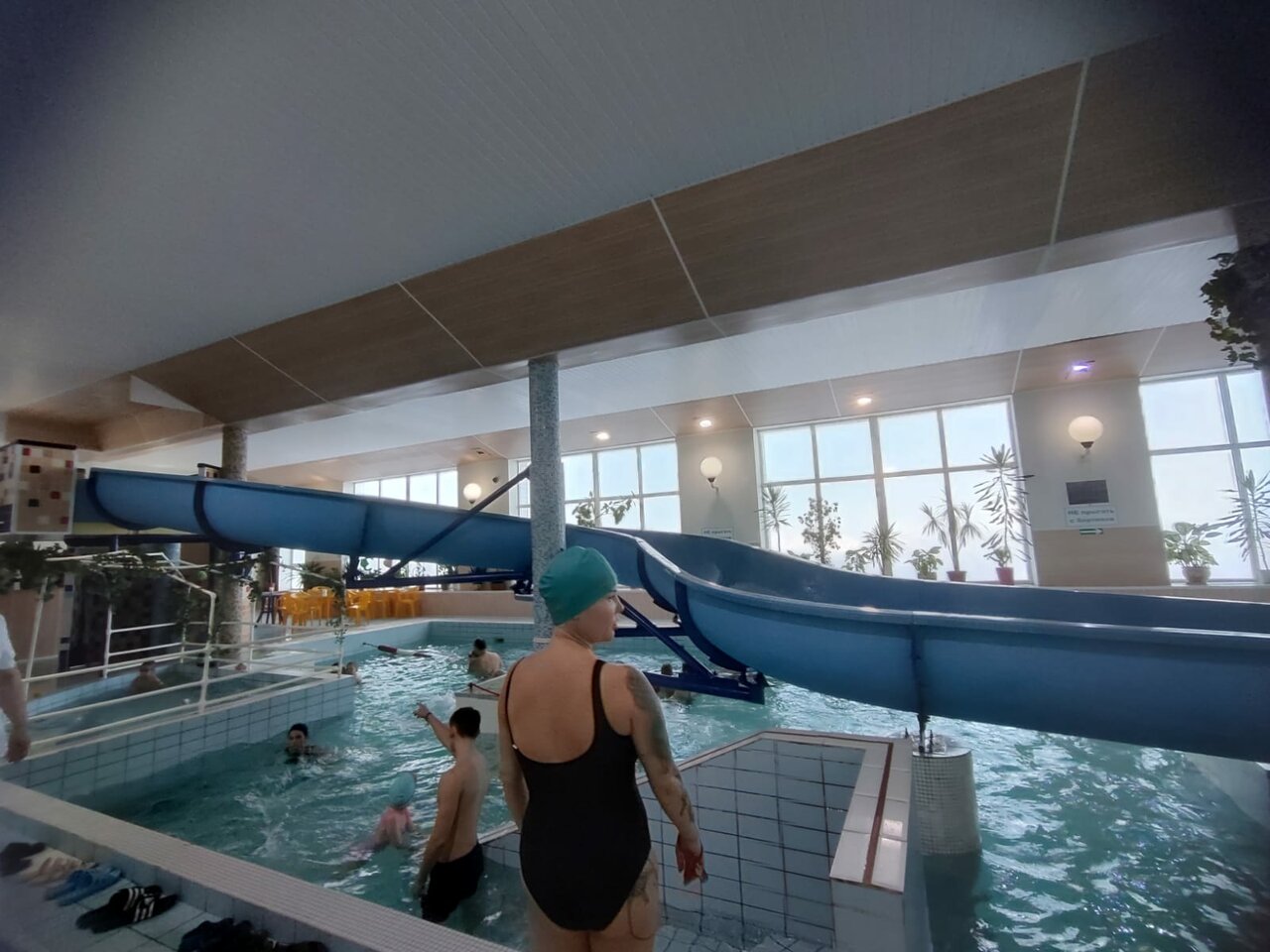 Отличное место, чтобы отдохнуть с детьми после экскурсий по городу: бассейн, горка, лягушатник тепленький для малышей, сауна, хамам и инфракрасная сауна. В среду и пятницу — безлимитное пребывание весь день. Единственный минус- в кафе рядом с бассейном есть напитки и мороженое, но поесть нечего. Поэтому весь день с детьми на мороженом не проживешь. Но это и не главное там. Дополняет все невероятный панорамный вид на город!!!!