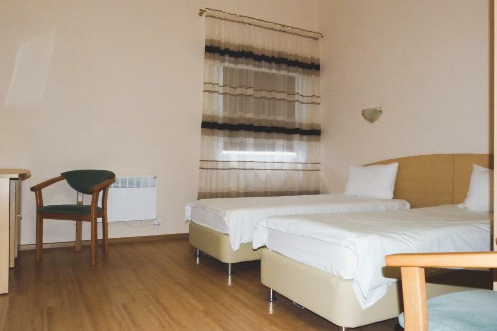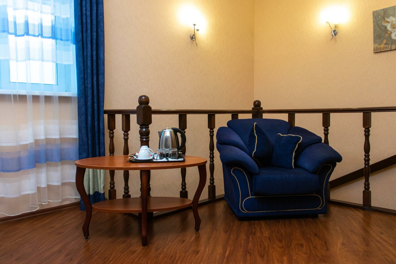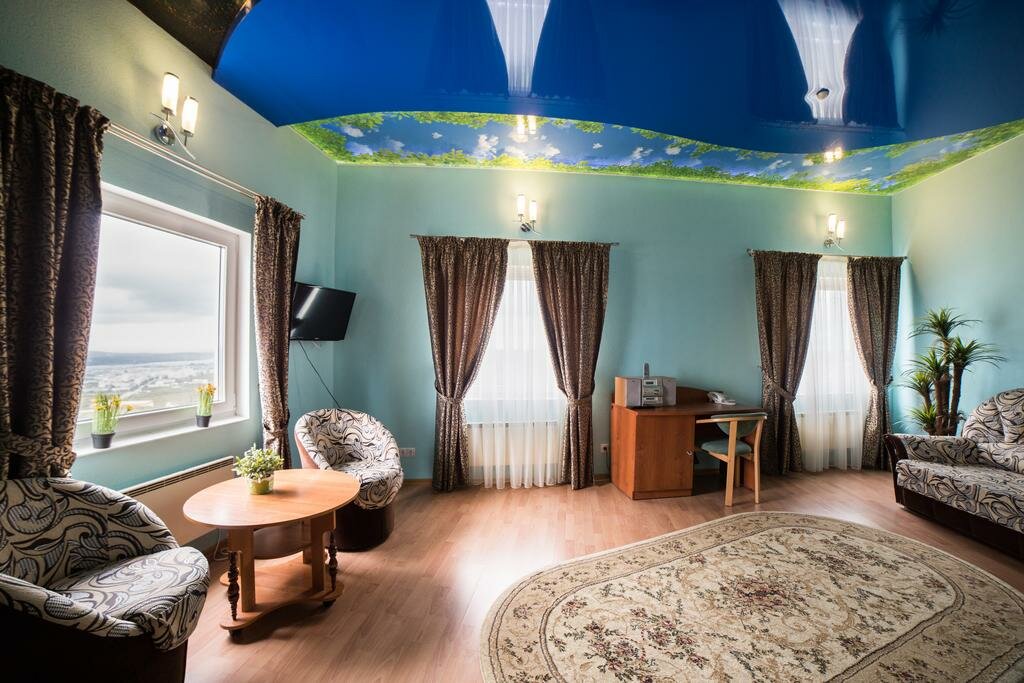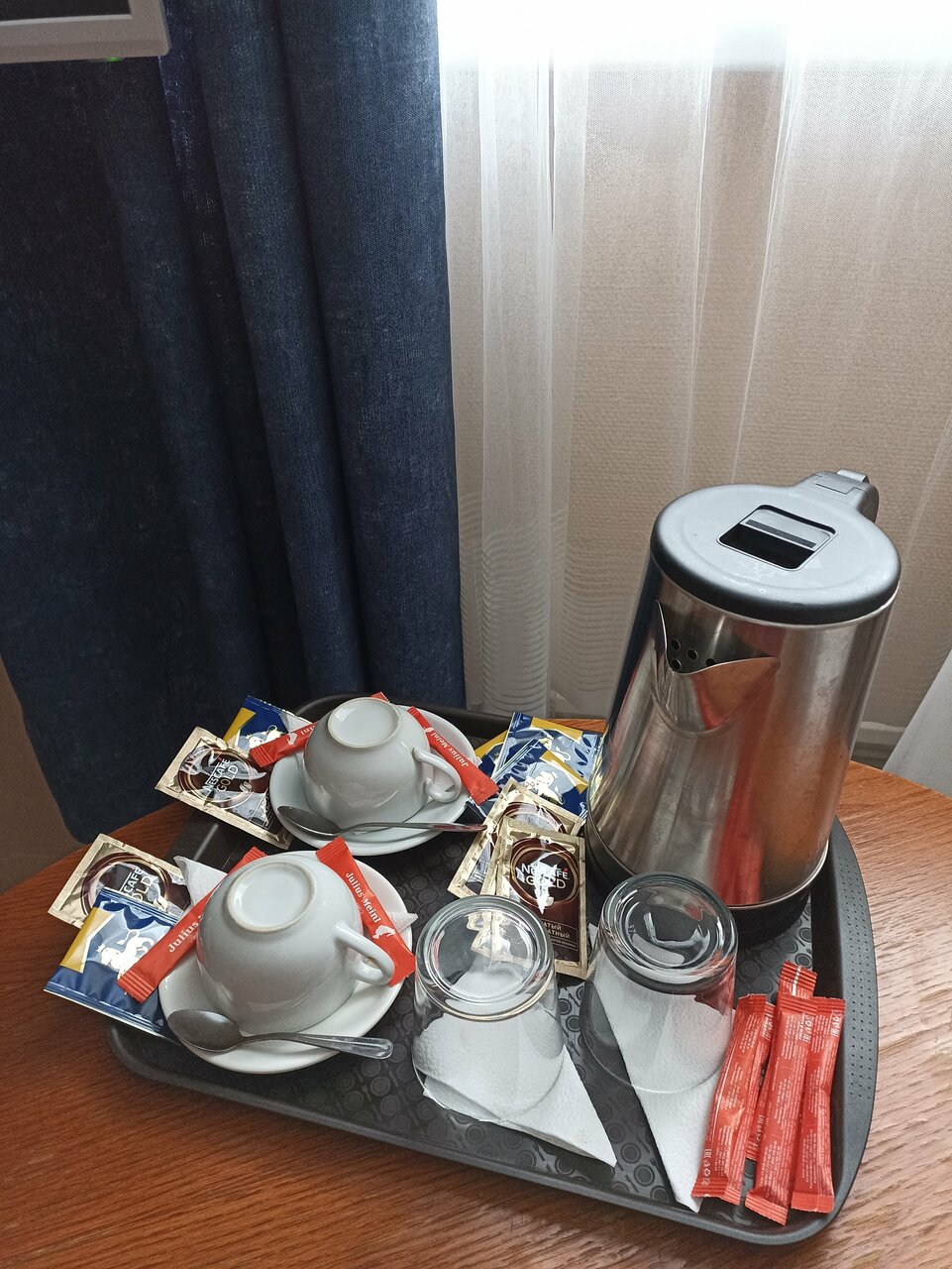 Гостиница находится на удалении от города. До ближайшего продуктового магазина нужно ехать на такси. В гостинице есть ресторан. В номере есть чайник, холодильник и чайный набор. Розеток немного и не очень удобно расположены. Чтобы добраться в гостинице до люкса нужно выполнить целый квест. Лифта в гостинице нет, но в ней всего 3 этажа, хотя для большого количества тяжелых вещей это может быть проблемой.