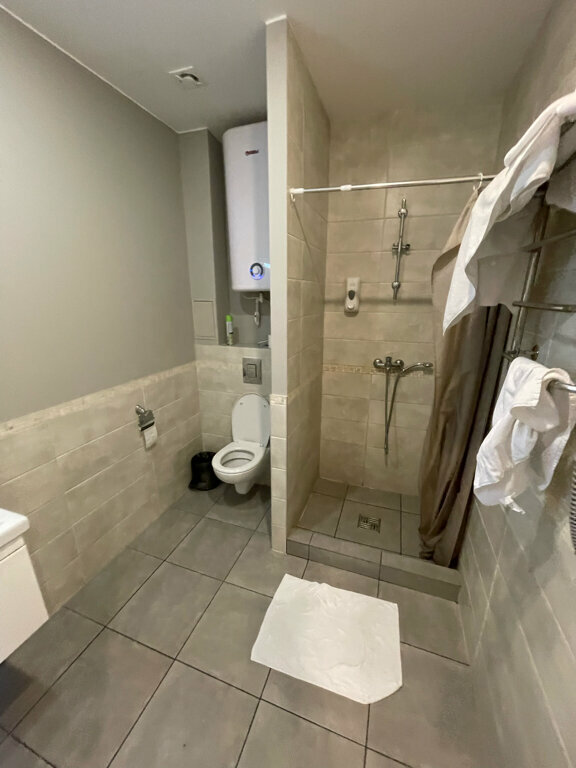Очень хороший отель. Приветливый персонал. Номера чистые, звукоизоляция хорошая. Отличные кровати. Есть небольшая кухонька — плита, вытяжка, микроволновка, чайник, посуда, бокалы для вина и шампанского. Есть и не очень положительные моменты — в душе не очень продумана занавеска и вода выливается на пол, нет шампуня, но есть гель для душа. Но плюсов больше)