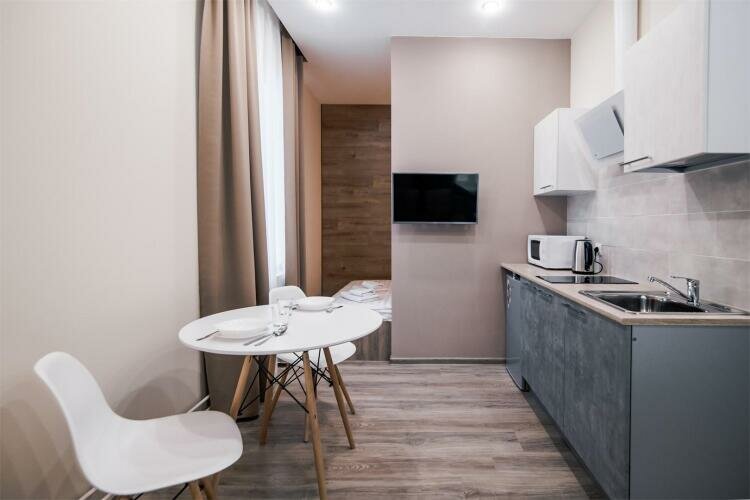 Хороший апарт-отель. У нас был современный стандартный номер — отличное соотношение цены и качества. Очень чисто, уборка каждый день, внимательный персонал.
