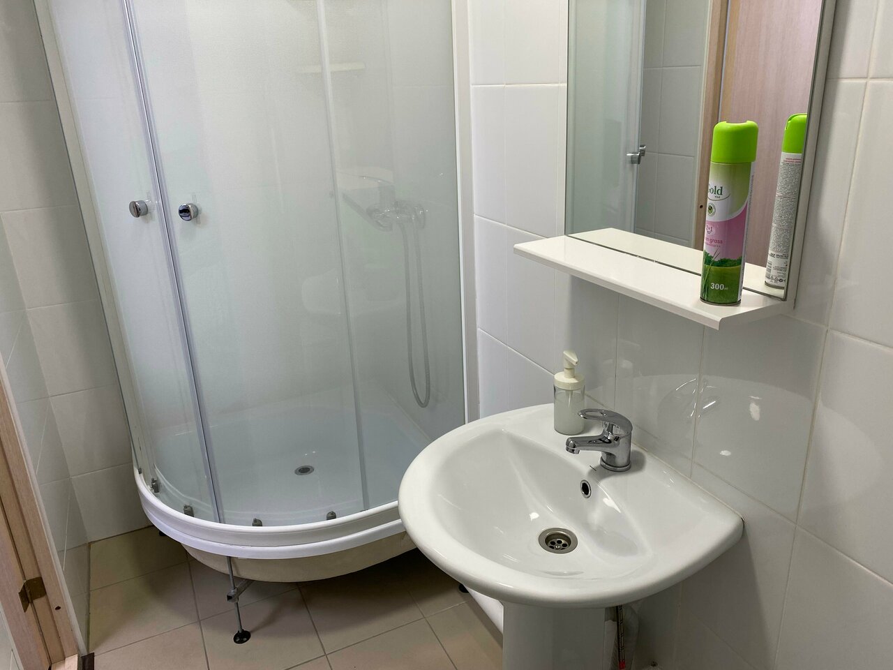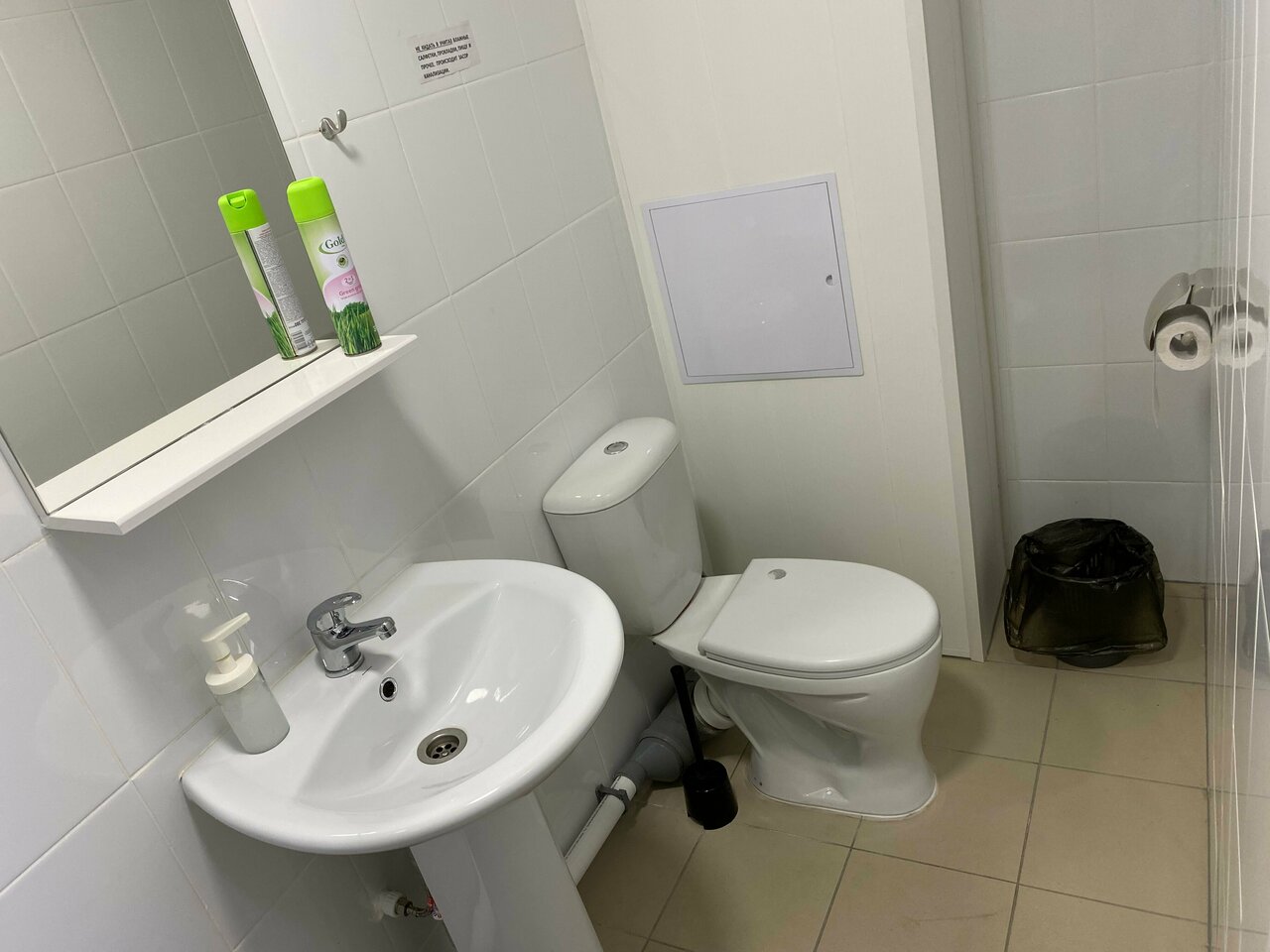 Душ и туалет на этаже, в номере нет полотенец и тапочек, уходовых средств тоже не предоставляют. Слышимость очень сильная, слышно что соседям говорят в трубку телефона. Запах столовки в номере. Не рекомендую. Только в качестве хостела, но для хостела стоимость завышена. Постельное чистое.