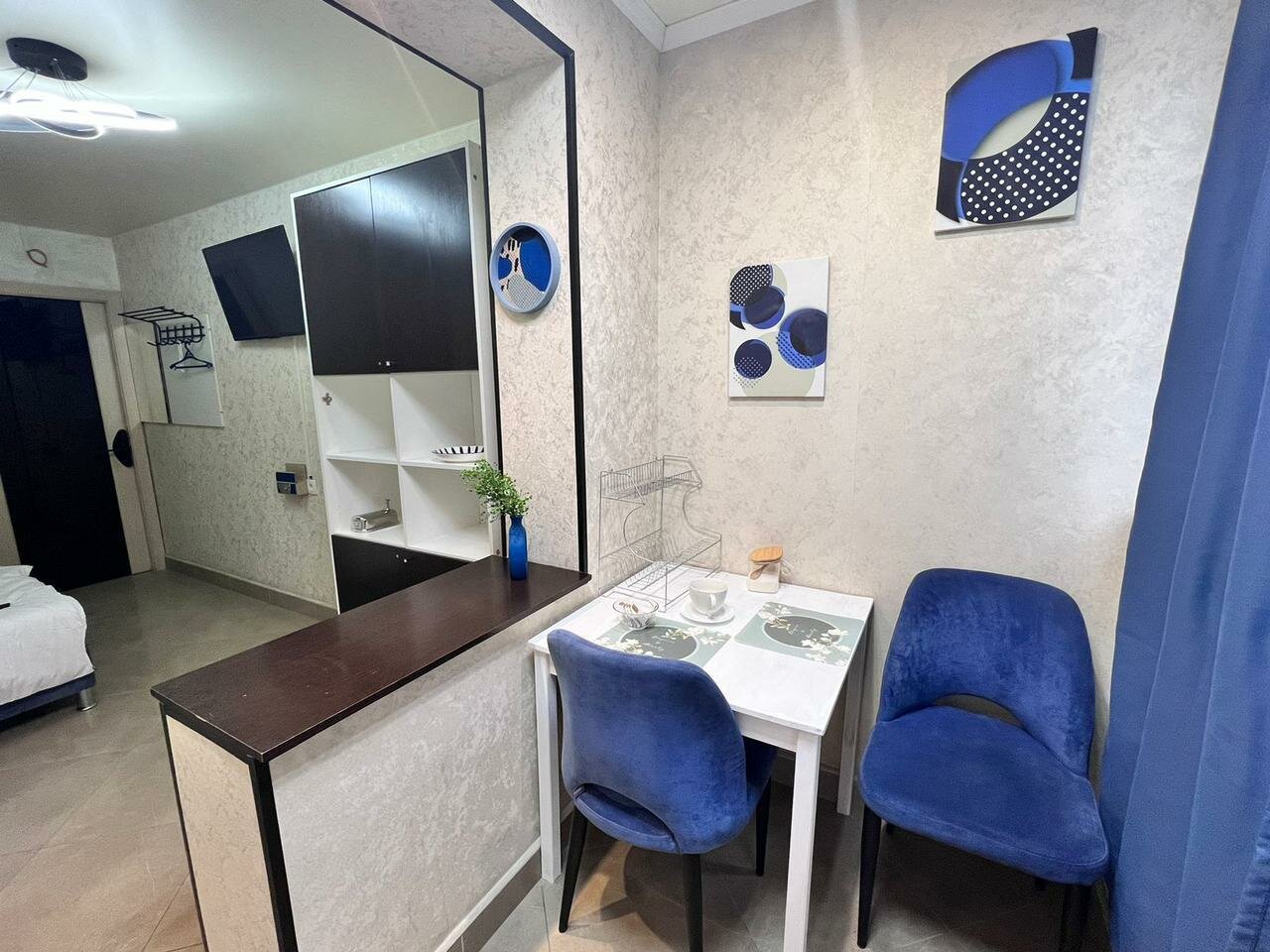 Отель переделан из нескольких квартир. Находится на первом этаже жилого дома. Всё сделано очень некачественно, но с претензией. Жутко тесно и неудобно. Особенно в туалете. Но всё есть: кухня, сан узел, машинка стиральная, холодильник. Проблема в ресепшене: очень недоброжелательный администратор.
