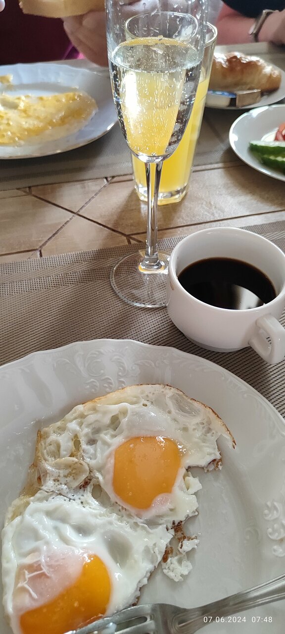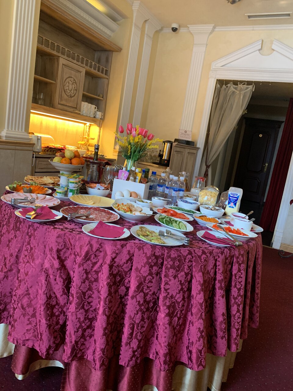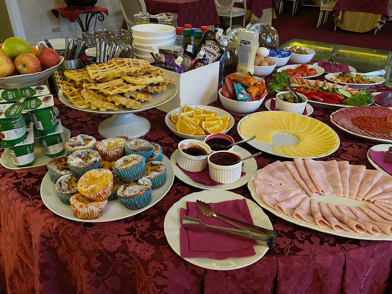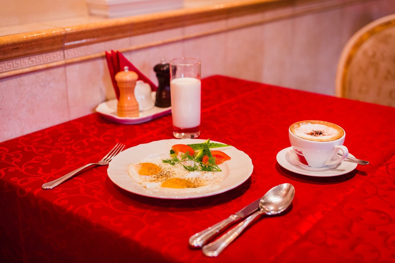 - Плотные и вкусные завтраки (омлет, яичница, блины, шампанское).