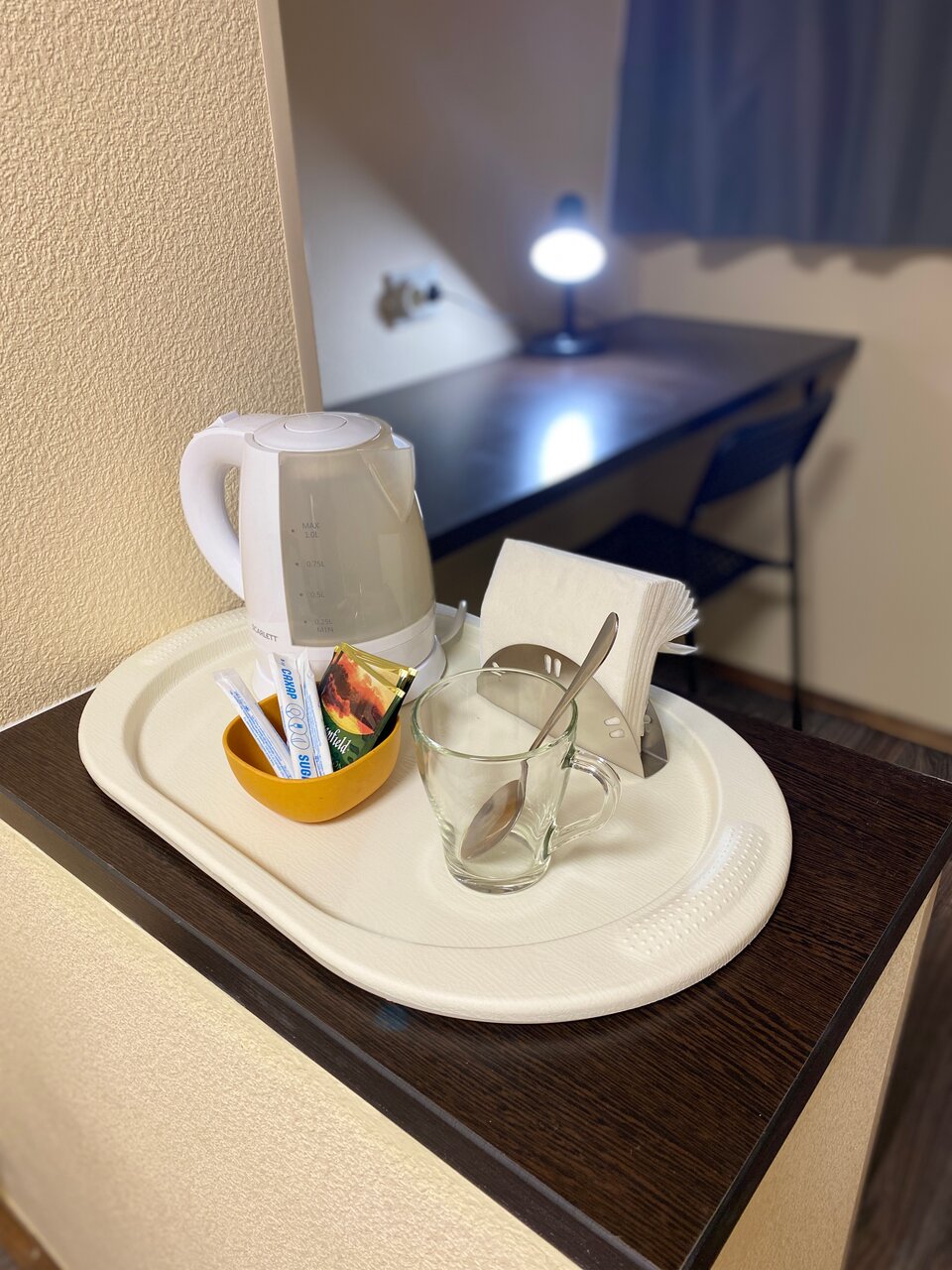 - Наличие чайника, чая, сахара в номере.