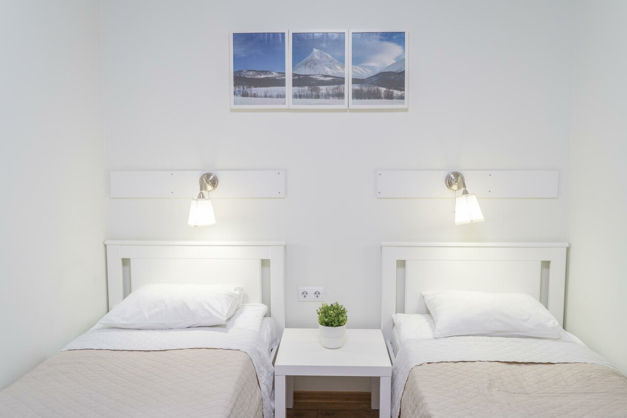 Останавливались в этом отеле второй раз.По расположению и цене ,думаю,лучшее соотношение не найдете.Комнаты уютные,все чисто.Есть кухня,где можно готовить самим.Даже витрина с сувенирами предусмотрена!Молодцы,так держать!Если поедем еще раз в Мурманск- только к Вам!