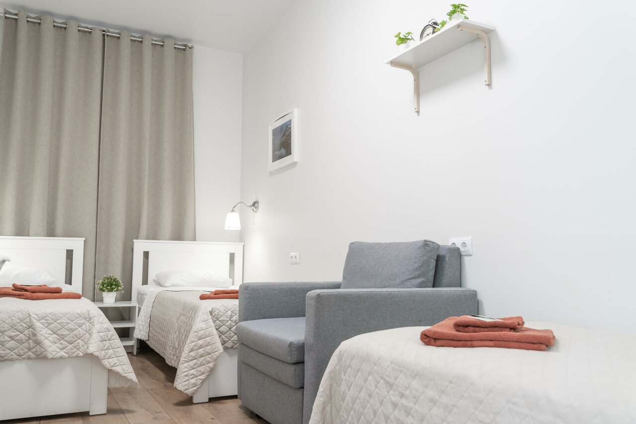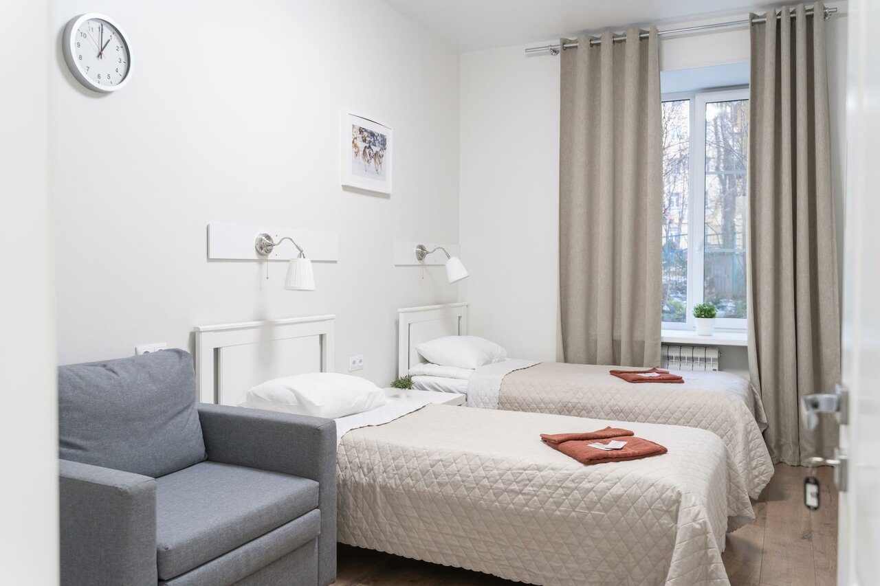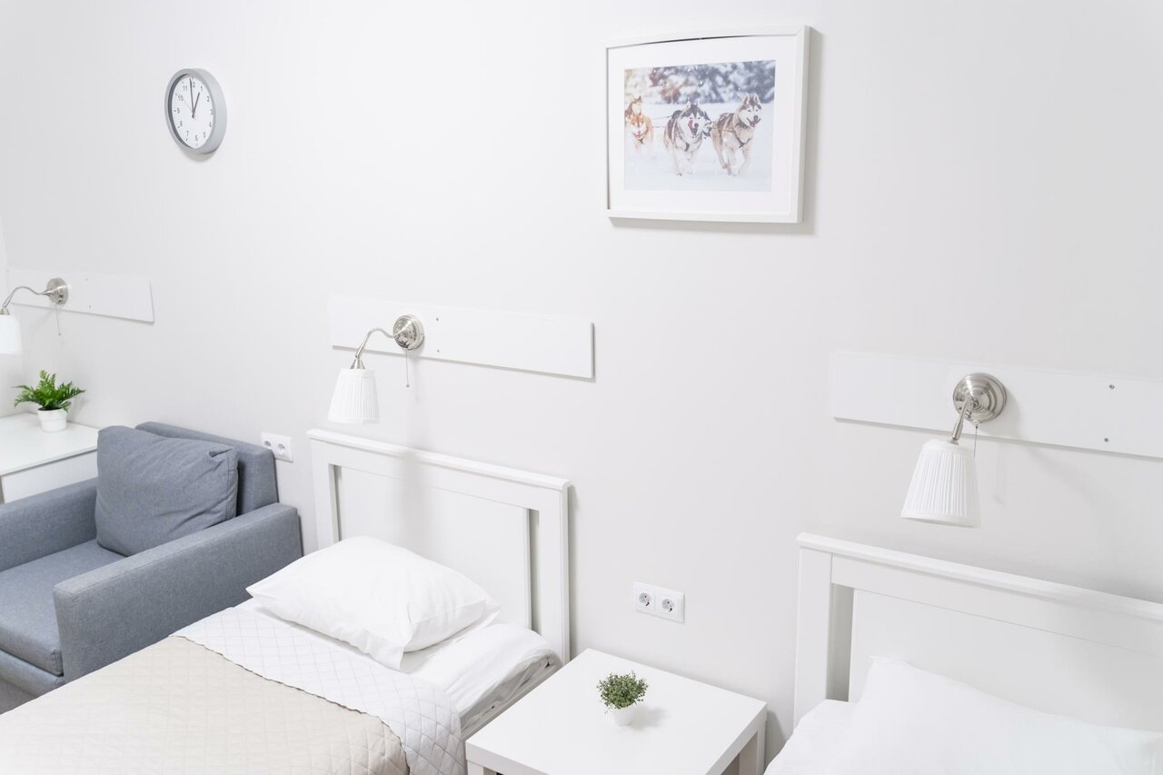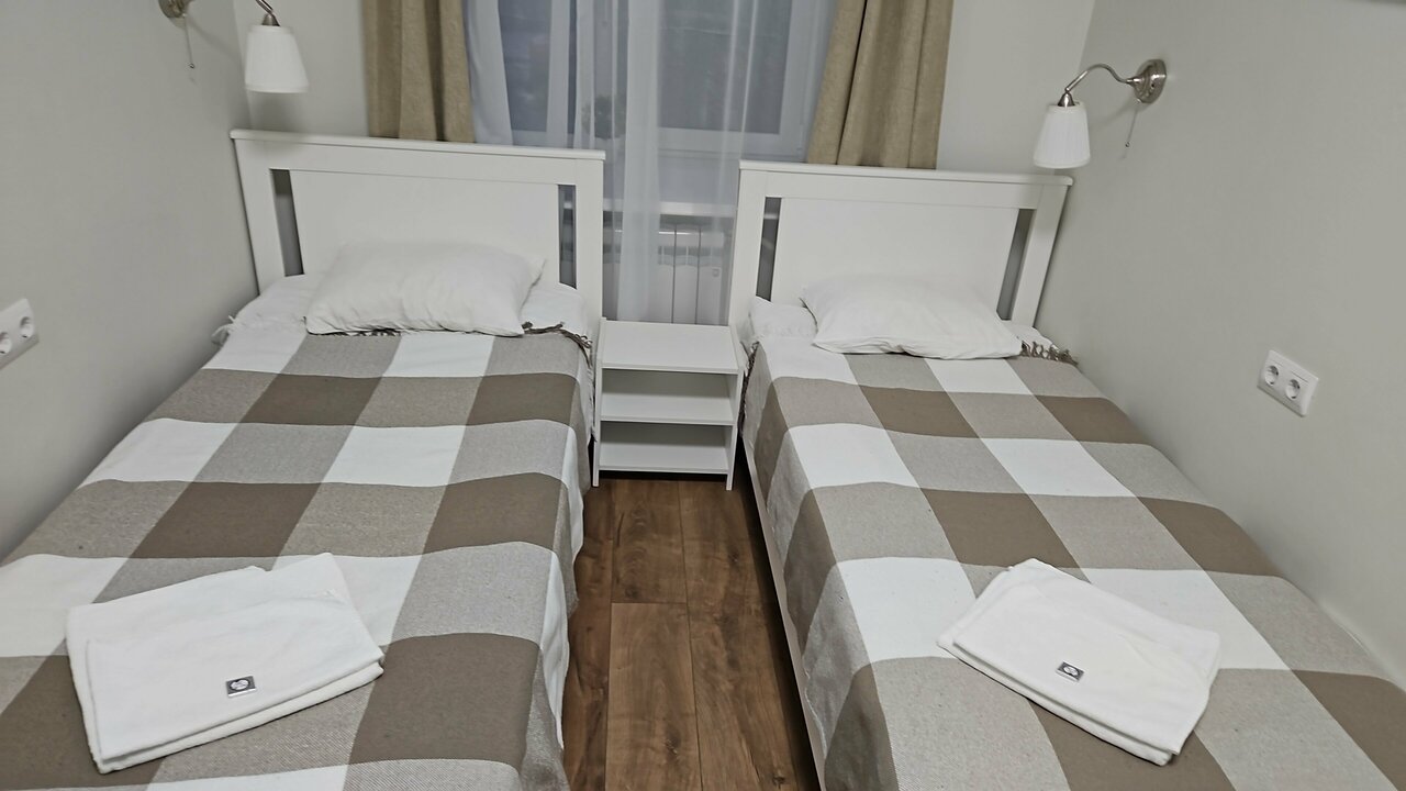 Уютный номер меблирован удобными односпальными кроватями. Номер постоянно отапливается. В номере собственная ванная комната. Также в распоряжении гостей кухня с зоной отдыха.К вашим услугам бесплатные туалетные принадлежности, предоставляется ко...