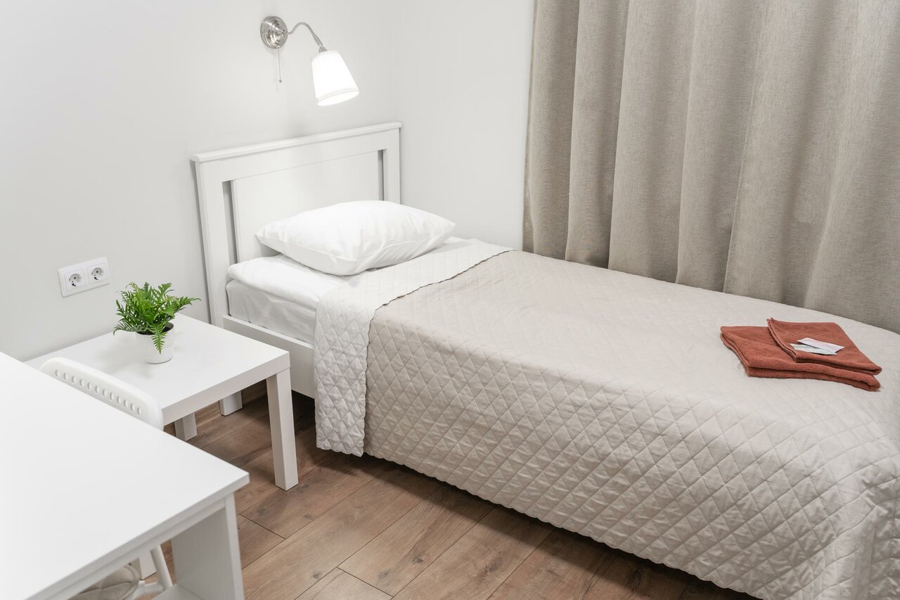 Уютный номер меблирован удобной односпальной кроватью. Номер постоянно отапливается. В номере собственная ванная комната. Также в распоряжении гостей кухня с зоной отдыха.К вашим услугам бесплатные туалетные принадлежности, предоставляется компл...