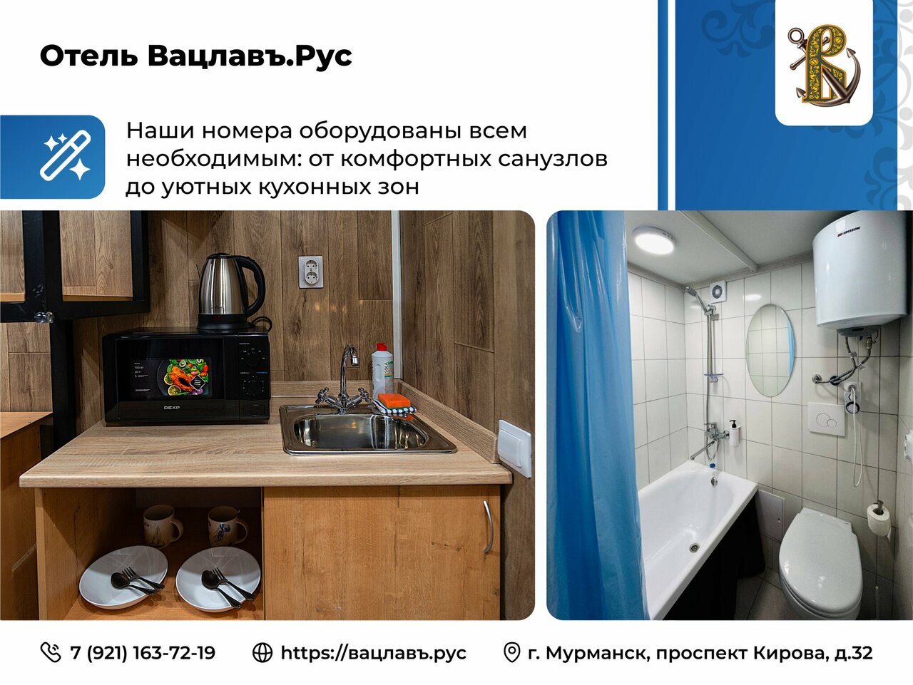 Гостиница Вацлавъ.рус — это крутой микс приключений и комфорта! Номера-каюты, детали как на корабле — чувствуешь себя капитаном Арктики. Расположение топ: до Мурманск Молла 5 минут, а вокруг куча кафешек и Магнит под боком. Вечером — пивной ресторан рядом, утром — виды на город. Идеально для тех, кто любит всё под рукой! Вернусь снова, чтобы поплавать в этой атмосфере.