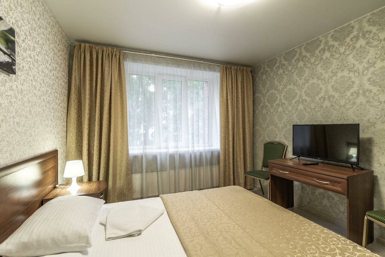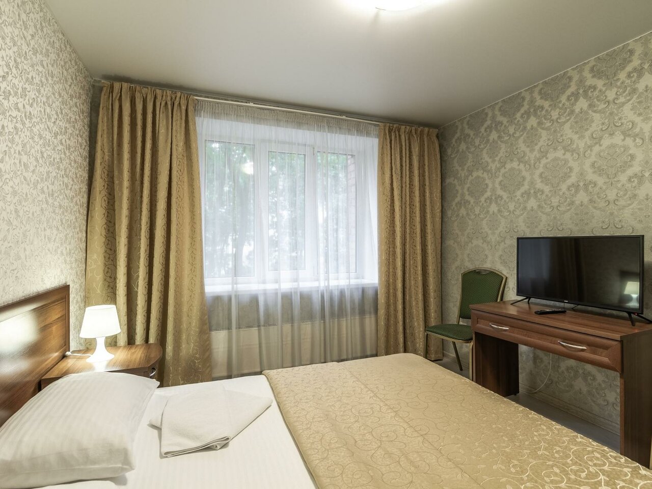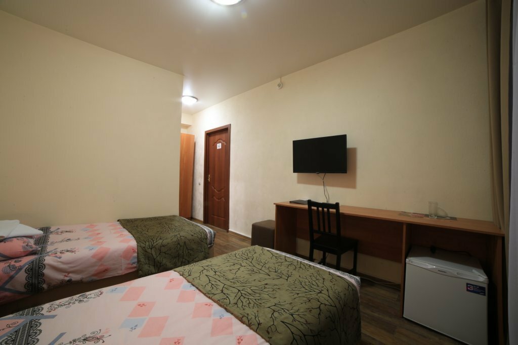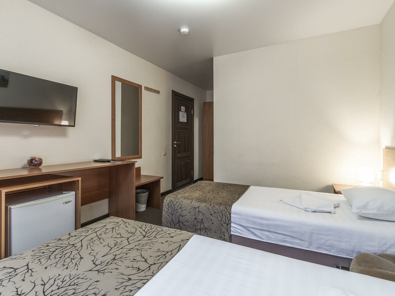 Услуги: — Номера от 2400 ₽/ночь с санузлом, Wi-Fi, телевизором, холодильником и чайной станцией. — Питание: завтрак, полупансион или полный пансион (по выбору), кафе, ресторан, мини-бар. — Для гостей: бесплатная парковка, платный трансфер (аэропорт/вокзал), камера хранения, лифт. — Дополнительно: массаж, прачечная, общая кухня, проживание с животными (платно).