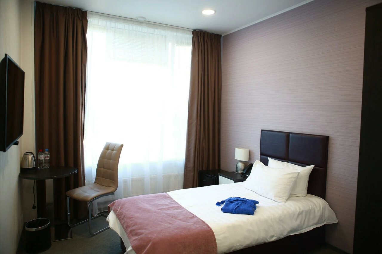 Очень хорошая гостиница, твёрдая четвёрка (не в смысле звезд))) не знаю как для кого, для меня важна чистая постель и чистый тёплый санузел, и все это в отеле присутствует. Номера не большие но пространства хватает даже в номере с односпальные кроватью (ну не жить же на постоянной основе),но предпочитаю заказывать номер с большой кроватью, так привычнее (человек в принципе существо привычки)). Слышимость между номерами и коридором в принципе умеренная, контингент постояльцев спокойный, не буйный, от того, даже если и слышишь какую-то ‘возьню’ в соседнем номере, это не напрягает. В общем вопросов/замечаний к отелю нет.