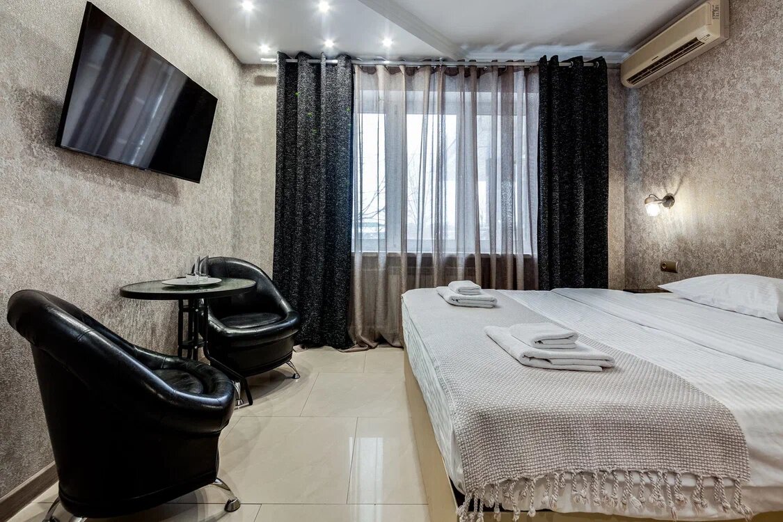 Гостиница находится в первой линии, менее чем в 5 км от центра, и подходит как для кратковременного отдыха (отель на час), так и для длительного проживания. В номерах предусмотрены халаты, тапочки, фен, сейф, а также доступны услуги SPA и прачечной.