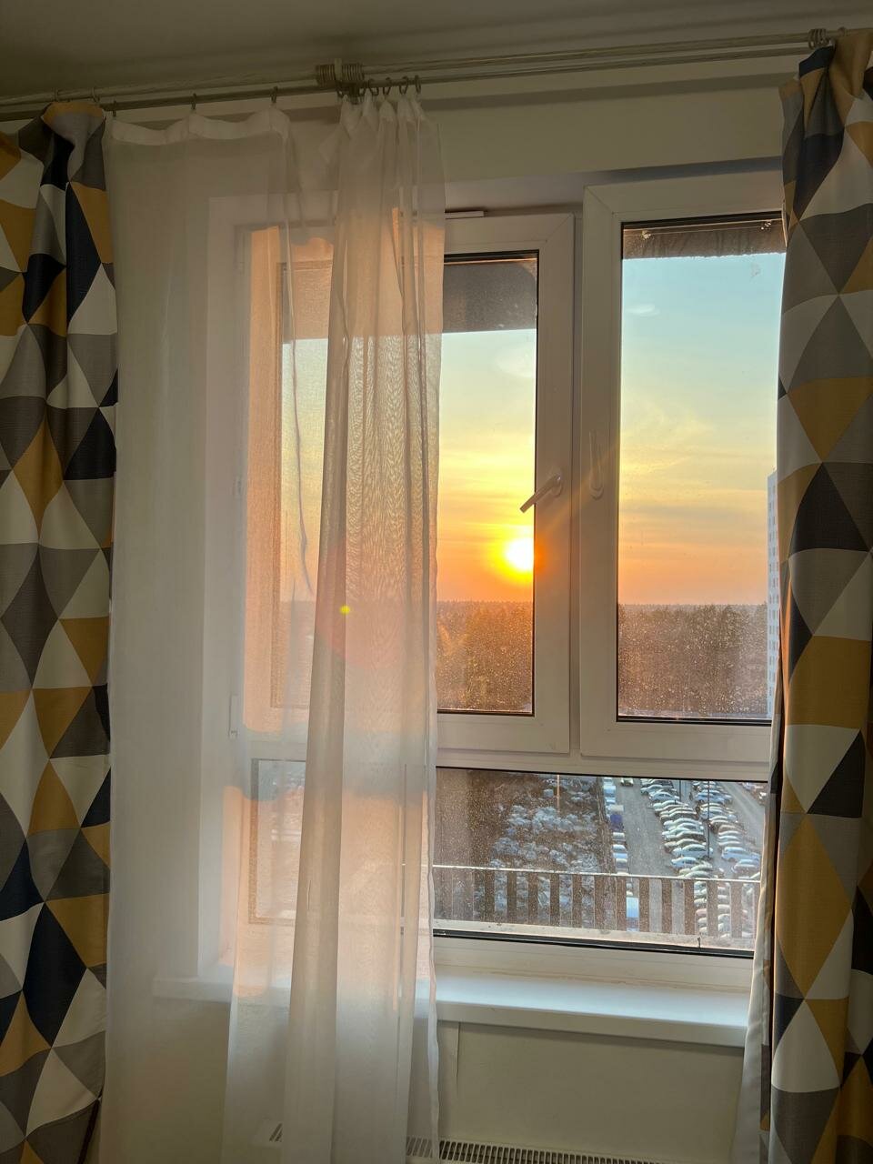- Вид из окна (лес, детская площадка, красивые закаты).