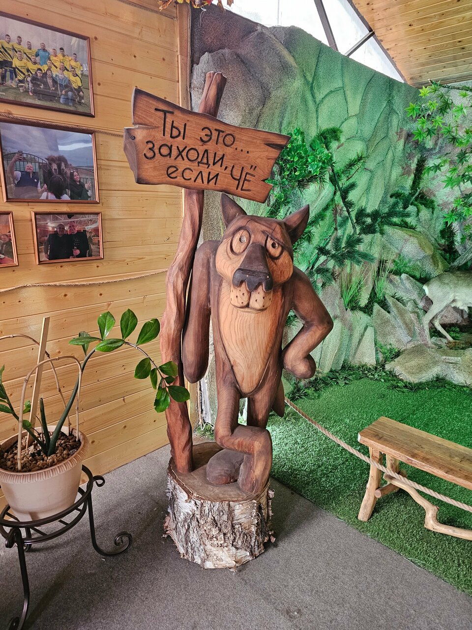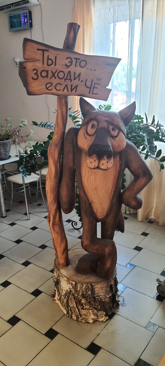 Ни ногой туда!!! Снаружи подкупились деревянными скульптурами. Но очень разочаровались едой. Очень не вкусно