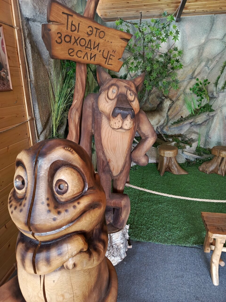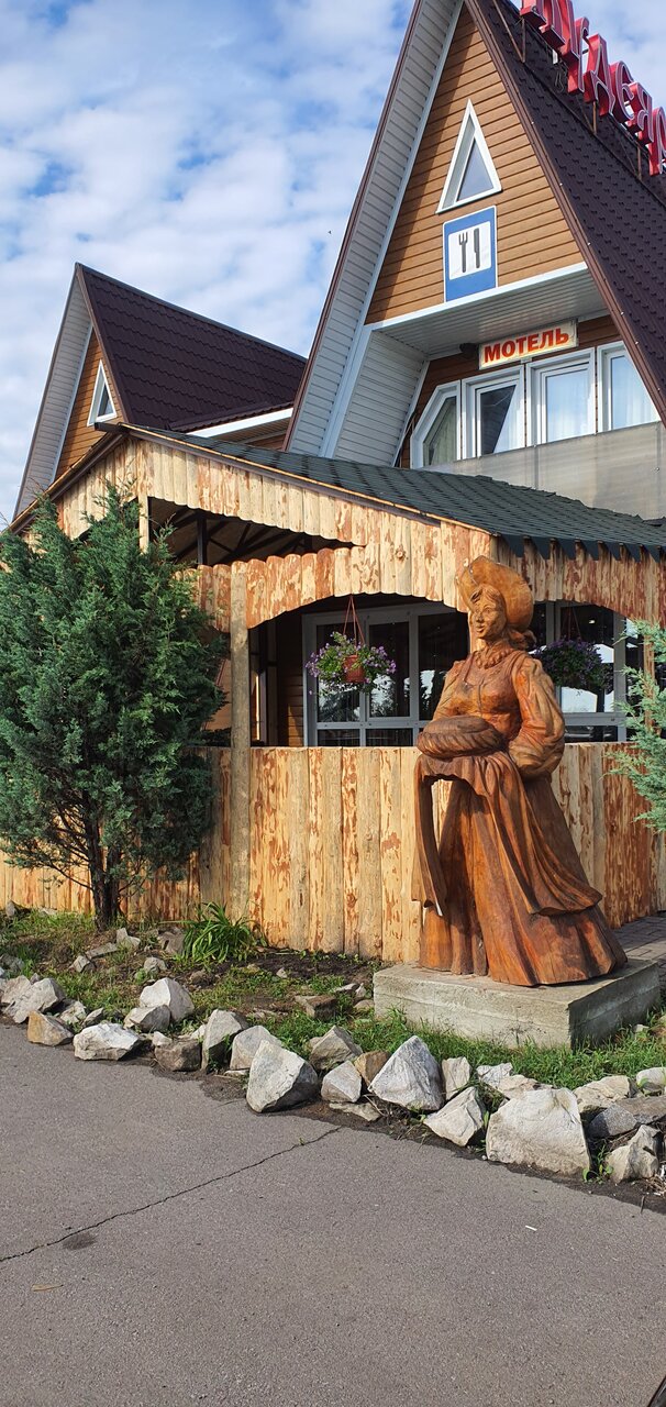 Путник — здравствуй. Был проездом и остановились здесь поздно ночью на сон. Быстро разместились. Номер чистый, с хорошими матрасами. Покормили ужином, очень вкусным и на удивление не дорого. А утром разглядел все красотЫ этого места. Резные скульптуры и разные сказочные персонажи вырезанные умельцами стояли по всей территории. Всё ухожено. Очень атмосферно! Этим летом обязательно заеду сюда с детьми по дороге на море!