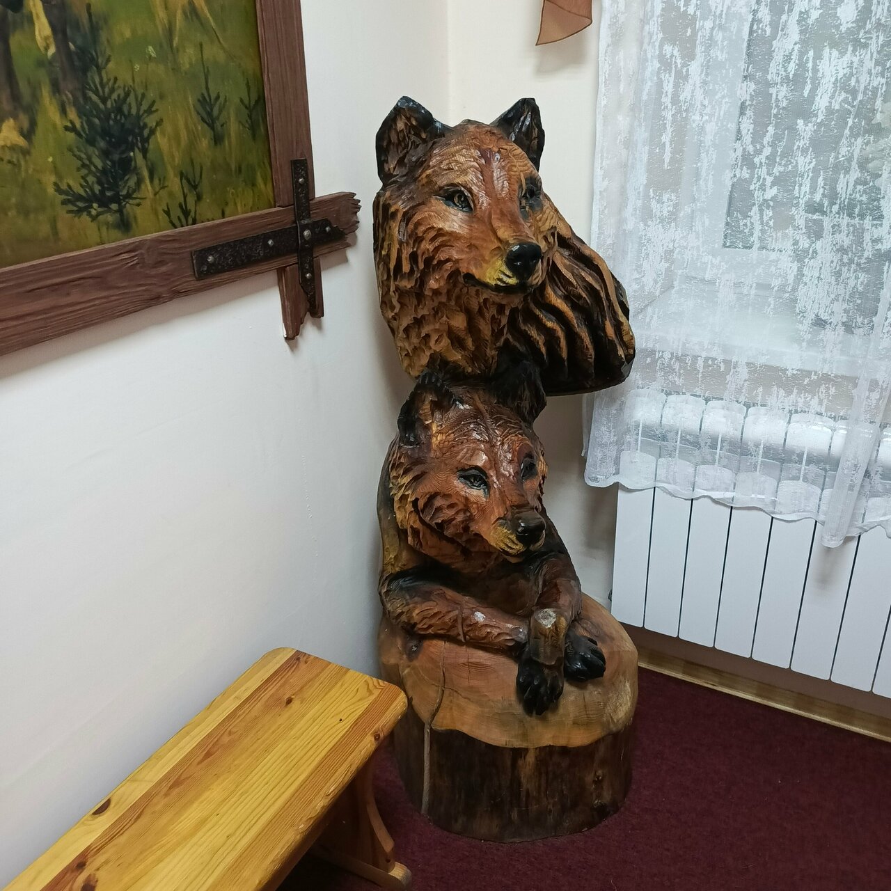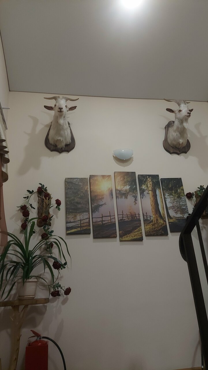 Неплохая гостиница. Номер лучше подальше от лестницы. Очень талантливый человек, который вырезает из дерева фигуры. Есть что посмотреть, пофоткаться. Атмосферно. Еда 24 часа. Вполне вкучно. Дктская комната есть.