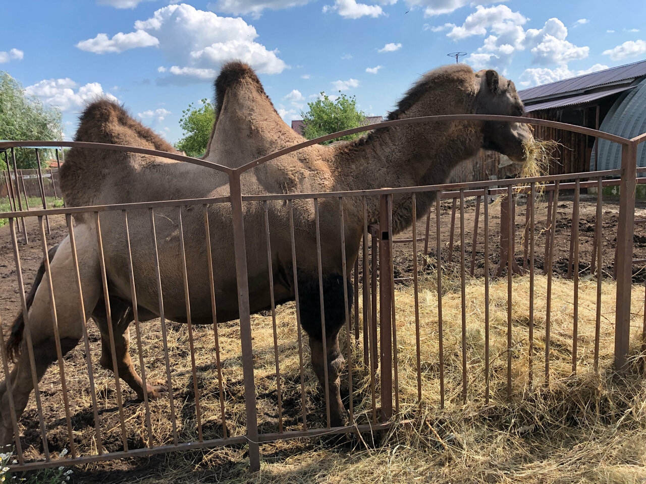 Отличная была там остановка, даже после пожара который там произошло, место с очень приятной атмосферой, вкусной и недорогой едой и классными животными — несколько больших ухоженных оленей , большие красивые двугорбые верблюды с огромными горбами, птицы еноты , живенькие любознательные белочки в отдельном домике, сыну там очень понравилось, если не ошибаюсь 35 км от Воронежа в сторону юга, несколько больших скульптур из дерева на самом въезде и по периметру стана , придают необычной и приятной атмосферность, не проезжаете мимо оно стоит того)