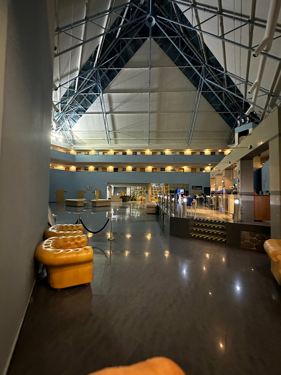Что касается проживания — всё на высоте: ресепшен, прекрасный атриум, прозрачный лифт, достойные номера, восхитительный вид на озеро, ежедневная уборка. А вот Газпром-Питание хромает: завтраки однообразные, бизнес-ланч не удалось попробовать (в пятницу быстро закончился, по выходным не бывает), ужина тоже нет.