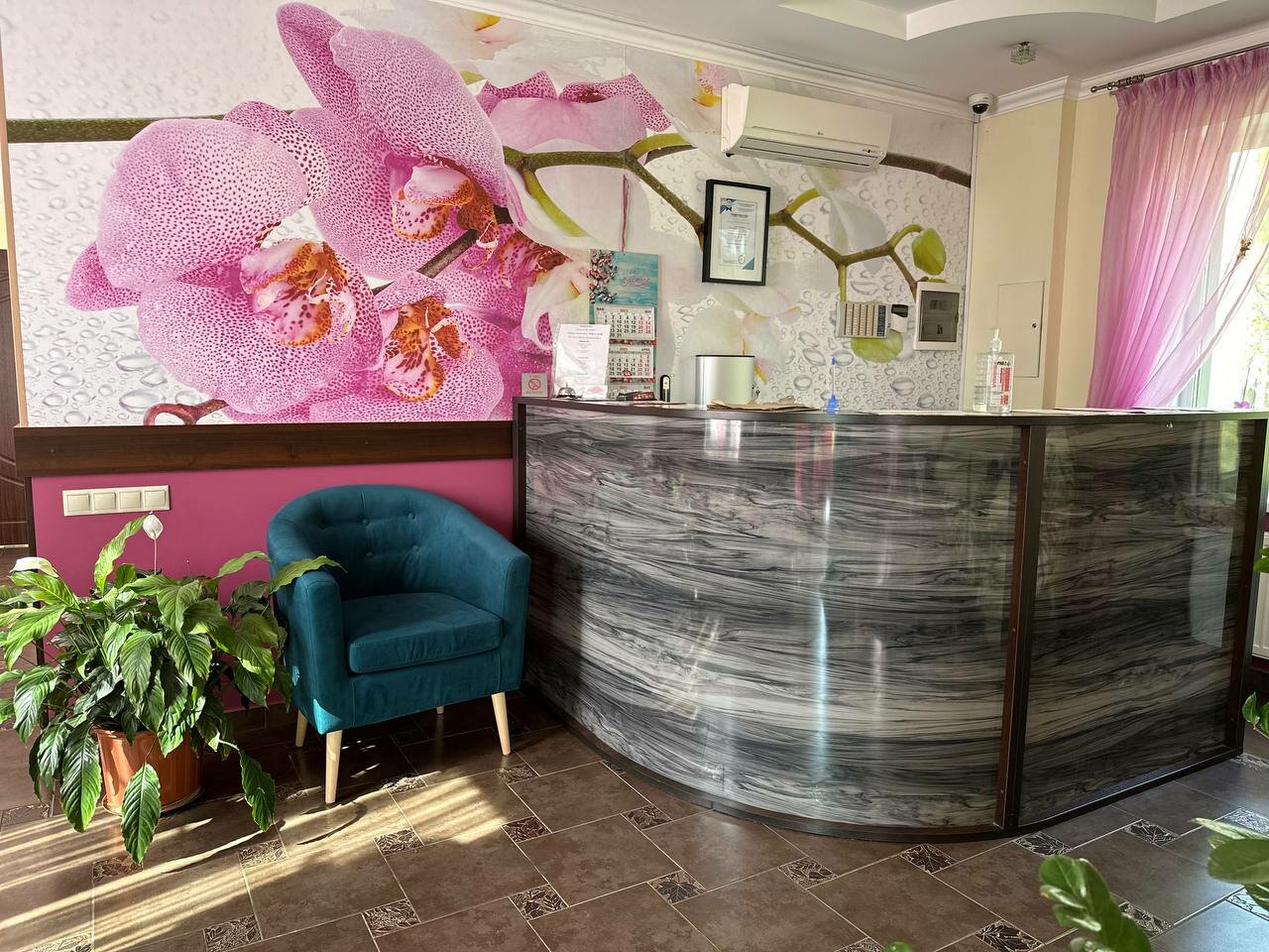 - Дезинфекция стоек, столов и стульев в холлах