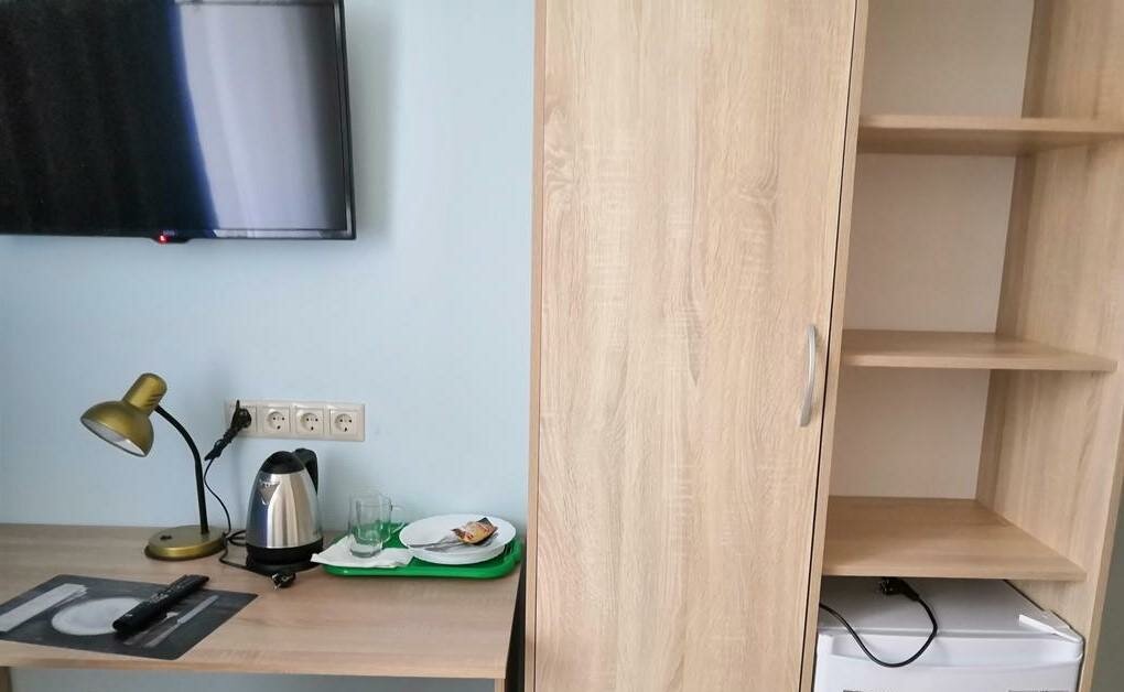 Приобретал через Яндекс путешествие одноместный номер. Чисто. Есть всё: кровать, комплект белья, быстрый вай фай, чайник, фен, холодильник и так далее. Описание соответствует действительности. Отдельная благодарность руководству! Звонил напрямую уладить один вопрос, не влияющее на данный отзыв! Кухня общая. Хочешь готовь, а хочешь закажу доставку. Рекомендую всем.