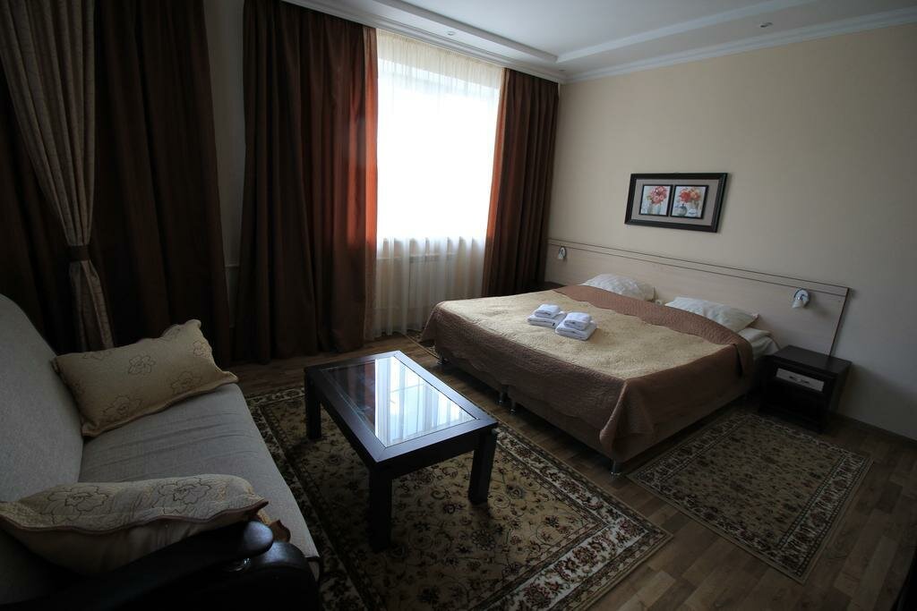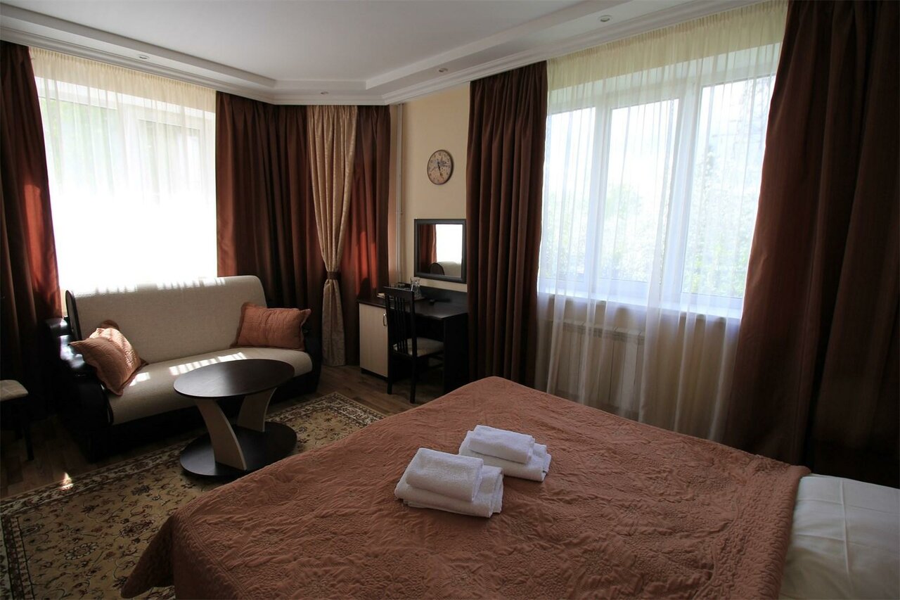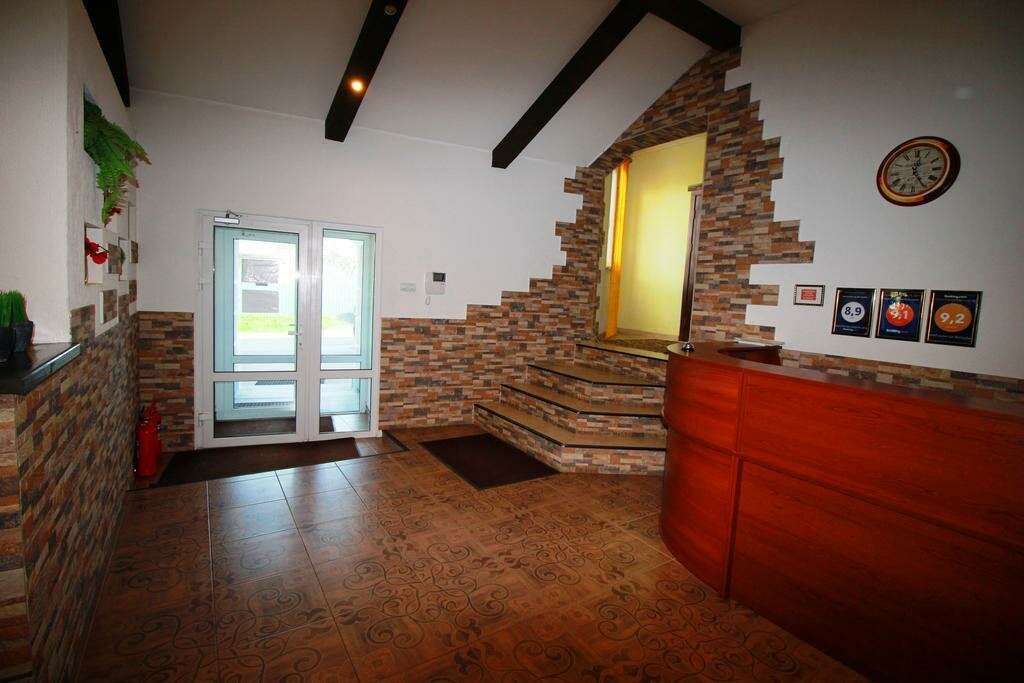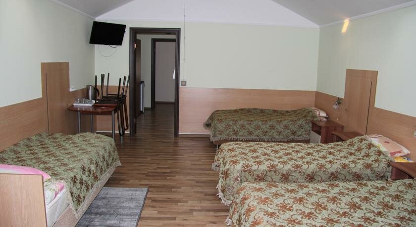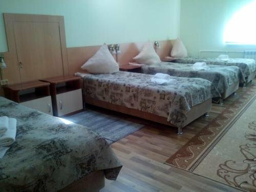 Гостиница состоит из двух корпусов. Первый боле-менее похож на 1-звездную гостиницу, а второй только что построенный хостел на 20 номеров, правда, одноместных и с удобствами в номере. Цены недорогие и номера вполне подойдут для остановки на ночь-другую. Потому и контингент может подобраться соответствующий. Качество обслуживания, т.е., уборки номеров, на троечку, постельное белье — не очень, полотенца — просто отстой. К плюсам можно отнести — стоянка во дворе, и месторасположение — на окраине города, воздух чистый, тихо.
