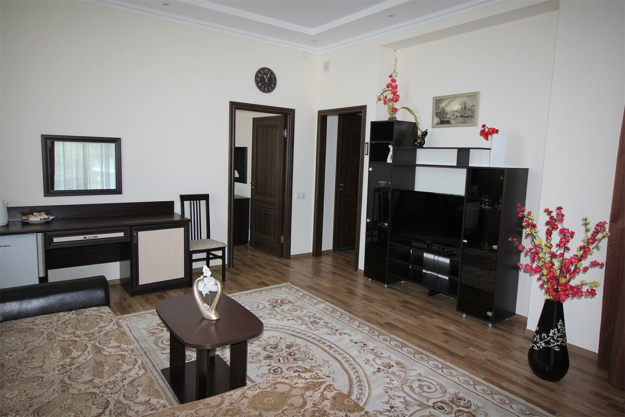 Номера большие , со всем необходимым и не только , не считая большой комфортабельной кухней с полным инвентарем.Персонал вежливый , отзывчивый на любую просьбу . Расположение идеальное, особенно для тех, у кого личный авто. Место тихое .