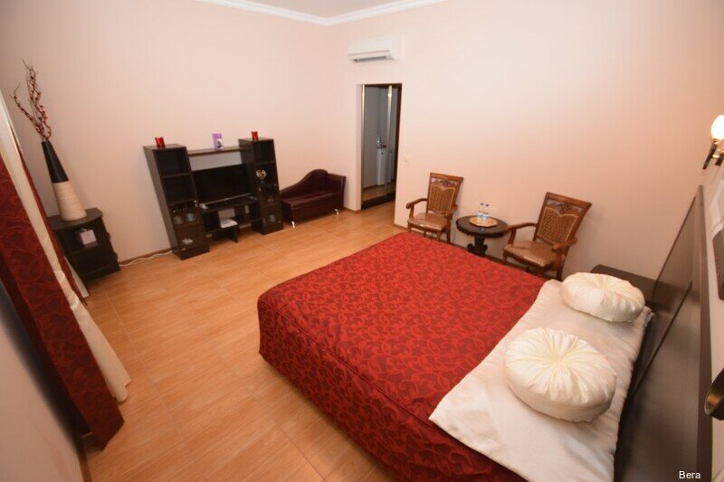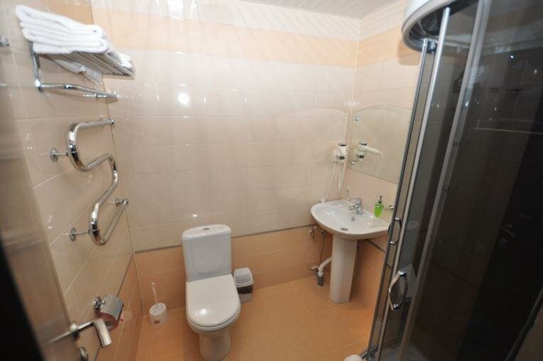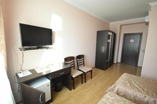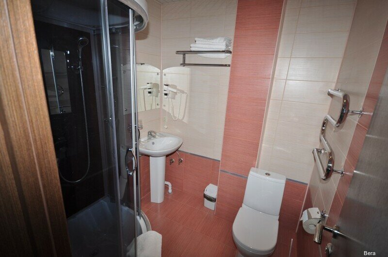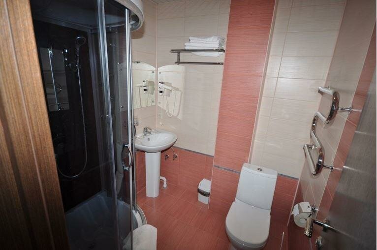 Площадь номера около 14 кв. м., в номере кондиционер, собственная ванная комната (душ/туалет), ванные принадлежности (полотенца, мыло, шампунь, гель для душа), фен, телевизор с плоским экраном.