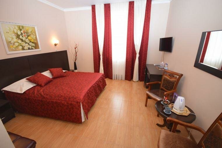 Гостиница понравилась, чисто, уютно, на удивление тихо. В номере красиво. Но нет чайника и ложечек, чай не попьешь. Хотя на каждом этаже стоит куллер. Так как на полу кафель, кровати в полном смысле, гуляют по номеру. Можно что то подкладывать под ножки, чтобы не двигались. Персонал, девочки, очень вежливые. Девочки, спасибо.