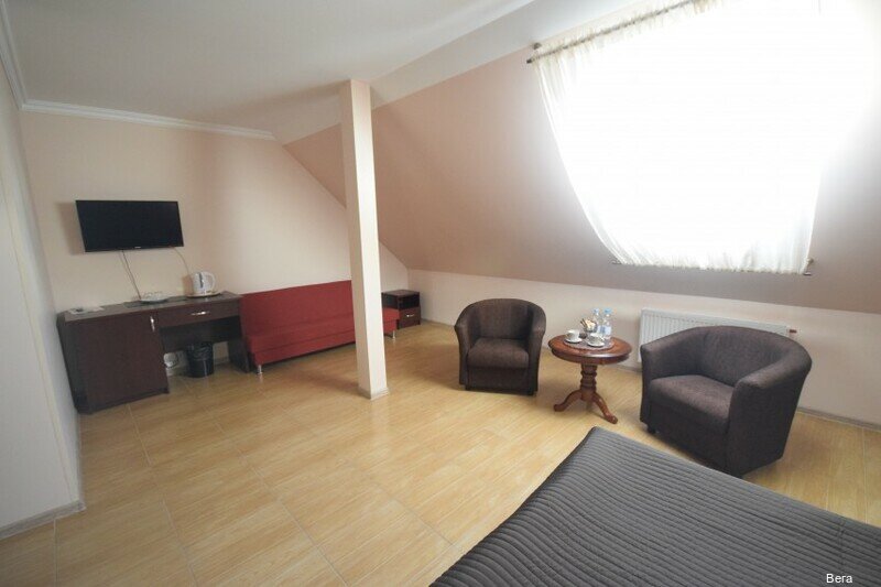 Площадь около 22 кв. м., в номере кондиционер, собственная ванная комната (душ/туалет), ванные принадлежности (полотенца, мыло, шампунь, гель для душа), фен, телевизор с плоским экраном, дополнительное спальное место (диван) по запросу, мини-кухня.