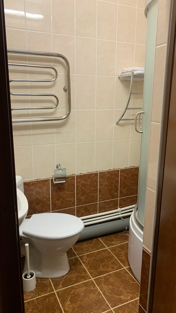 Нормальная гостиница, туалет и душевая кабина в номере. Микроволновка и чайник в коридоре. Рядом продуктовый магазин.