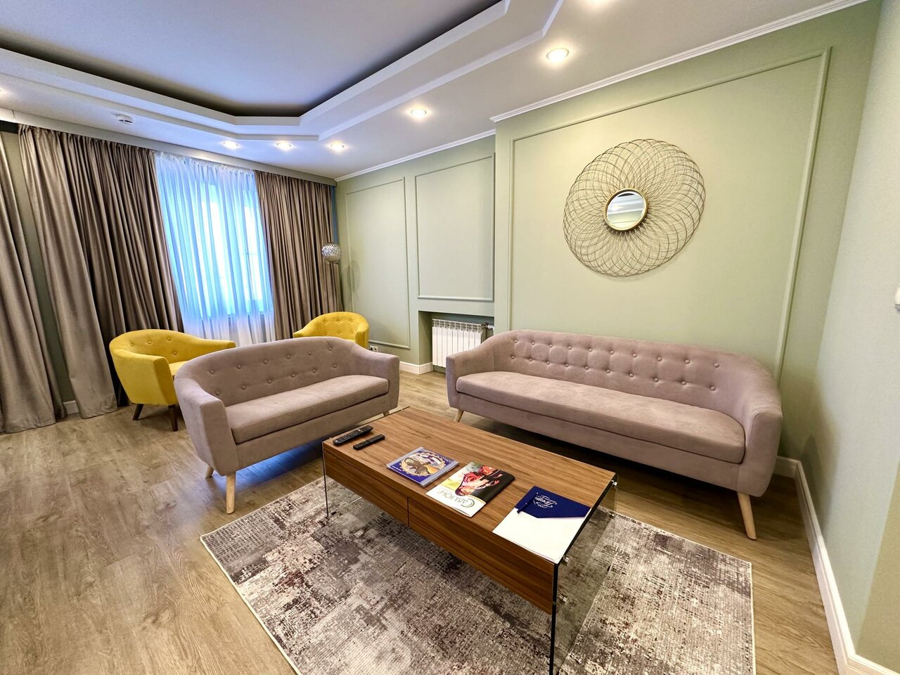 Добро пожаловать в «Президентский Люкс», где каждая деталь — стихия роскоши и комфорта!Стильный интерьер, современная мебель, сейф для хранения ценных вещей, для вашего удовольствия 2 телевизора, гигиенические и уходовые наборы, халаты и тапочки...