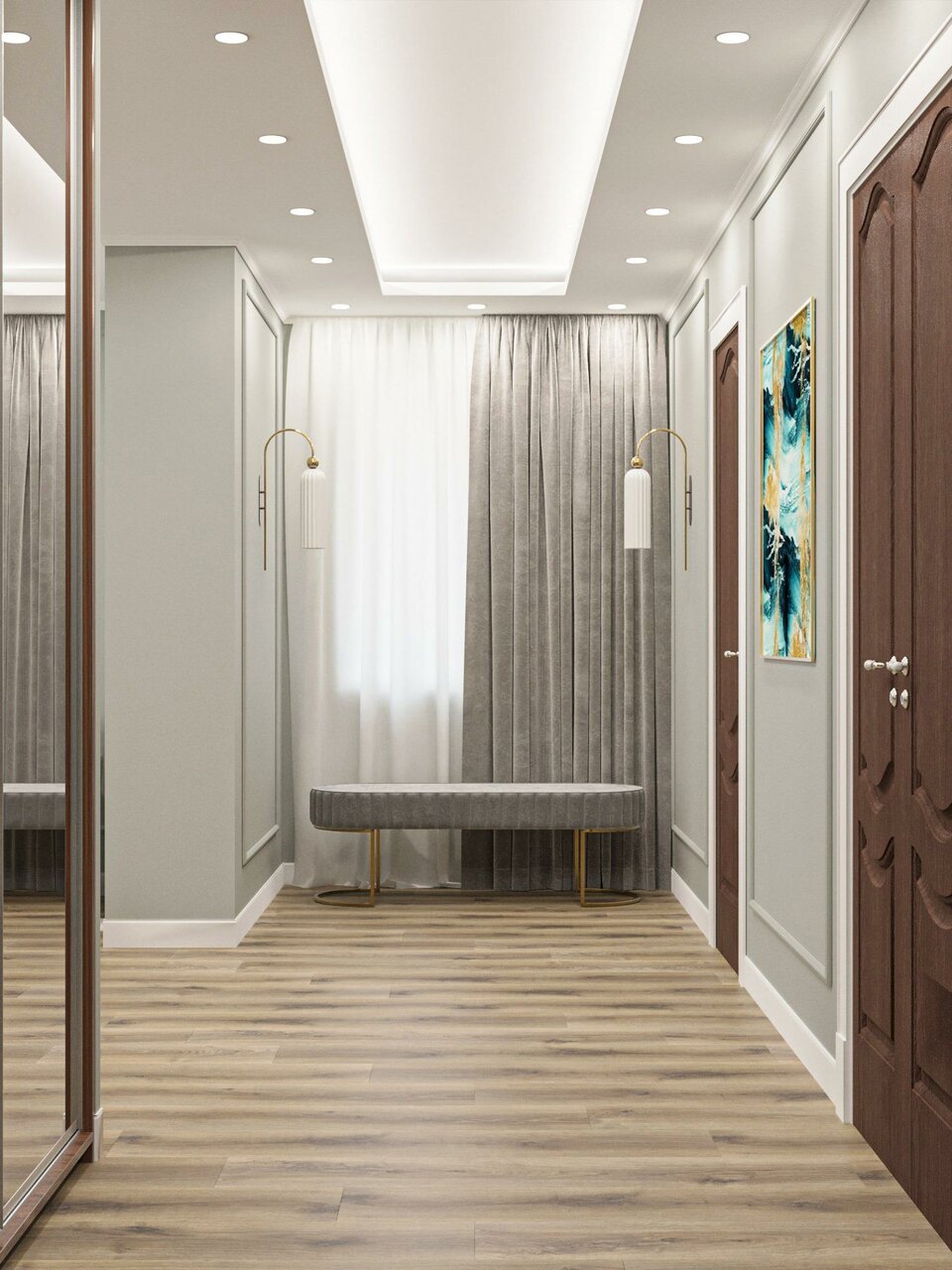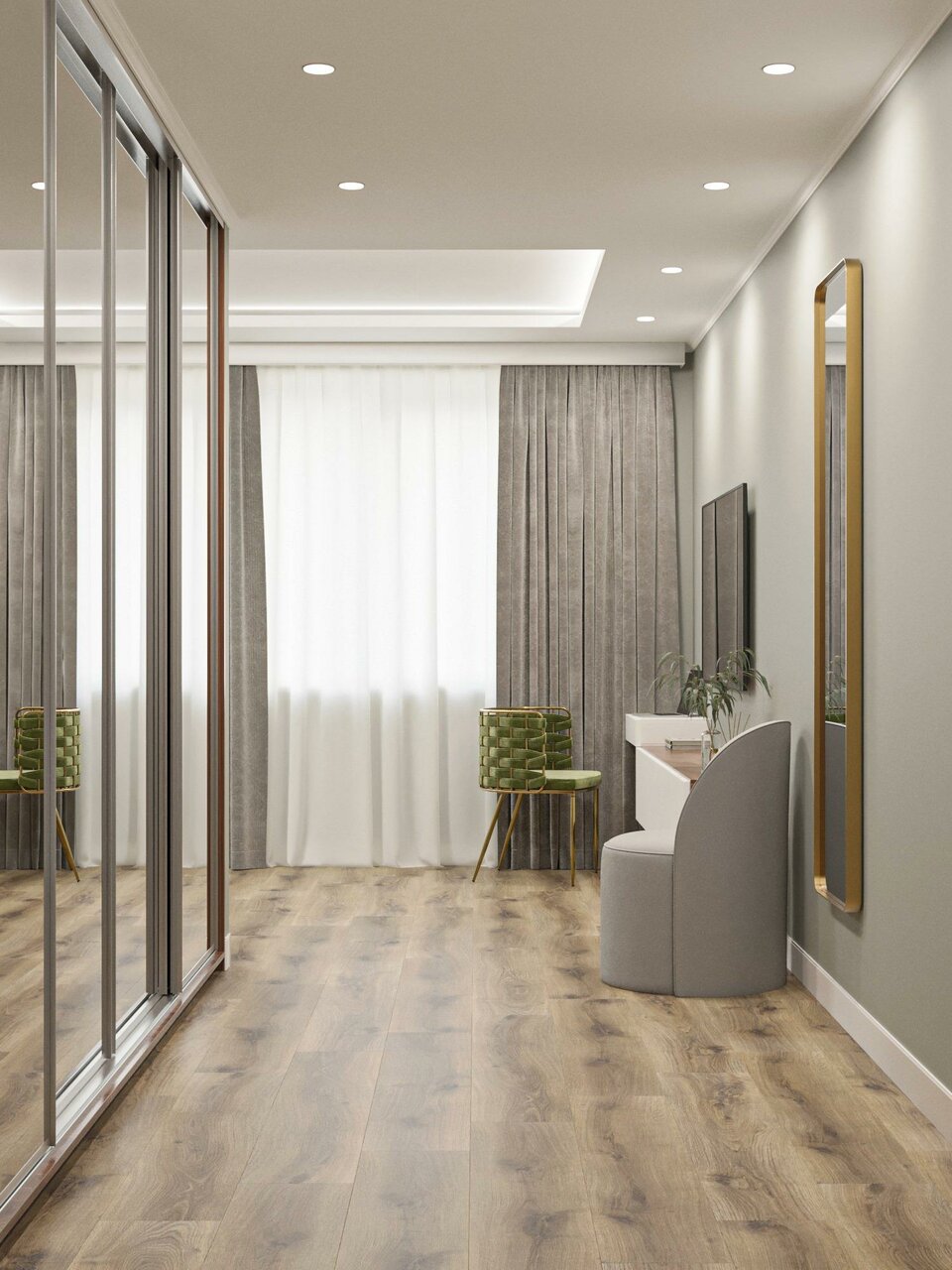 Интерьер этой комнаты восхищает классическим стилем и привлекательным цветовым решением. Нежный ковролин добавляет приятного комфорта и создает атмосферу спокойствия, а густые шторы обеспечивают полноценный и безмятежный сон. Это место, где можно ...