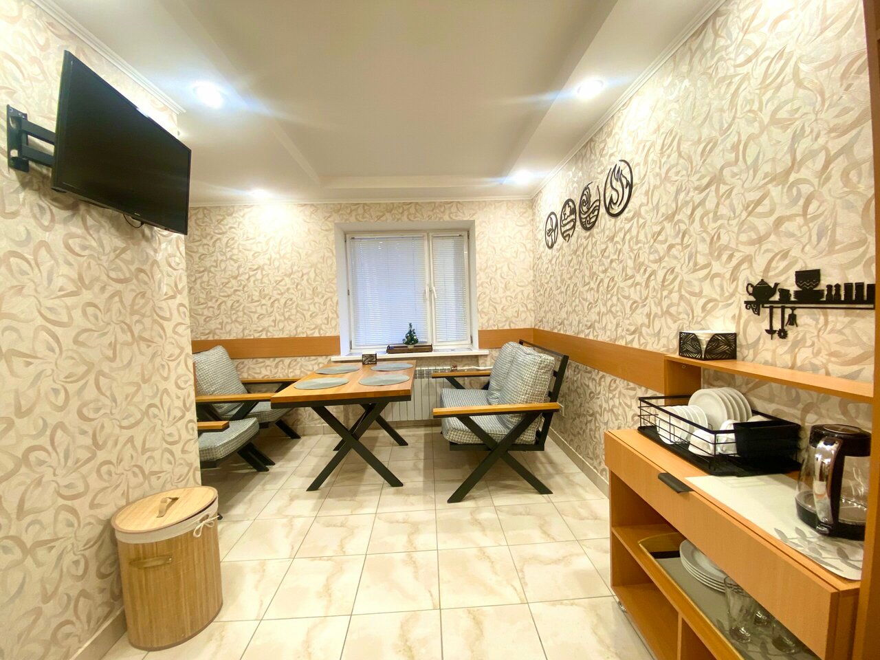 - Наличие чайника, посуды, холодильника в номере.