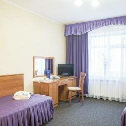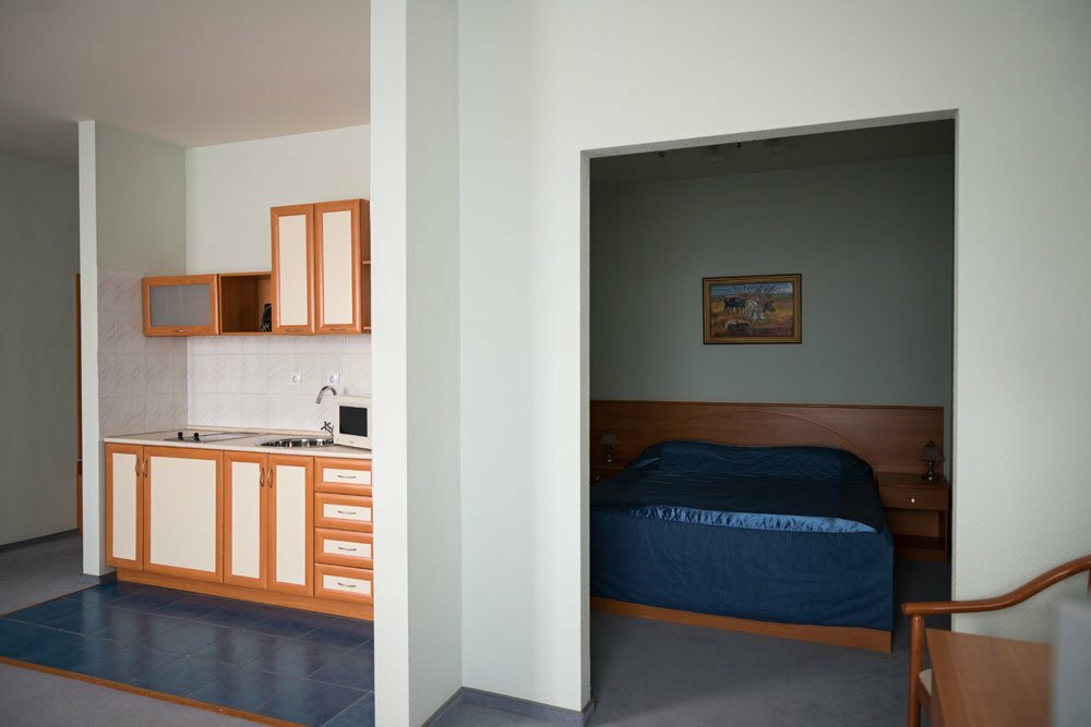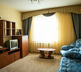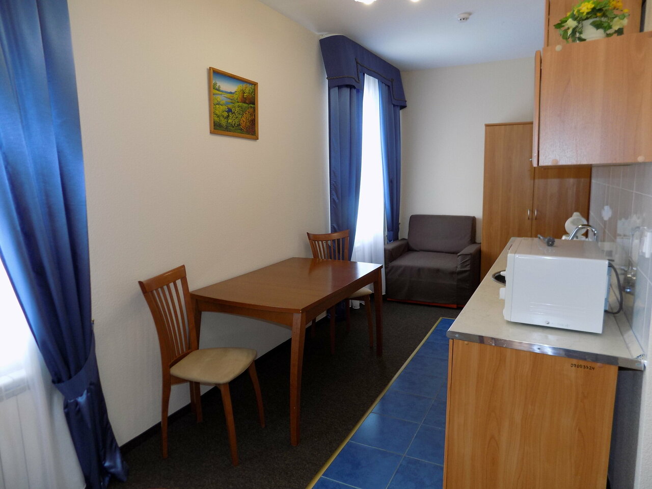 Проживали в гостинице пару дней. Сотрудники на ресепшене доброжелательные, обслуживание оперативное. Номер семейный — достаточно просторный, чисто, тепло, мебель не новая, но все целое. Есть тв, кухня, чайник, плитка, можно приготовить перекус. Были все гигиенические принадлежности, халаты и тапочки. Удобный матрас, хорошее белье. Завтрак в виде шведского стола скромный, но сытный. Нам все понравилось