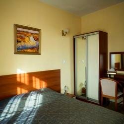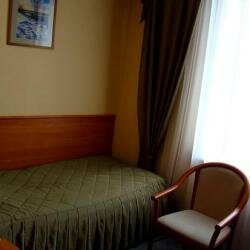 Гостиница позиционирует себя как трёхзвездочная, но я бы максимум поставил две звезды! Двухместный номер представляет собой наличие кровати и что-то наподобие раскладушки. Ну за отсутствием альтернативы хоть что-то!