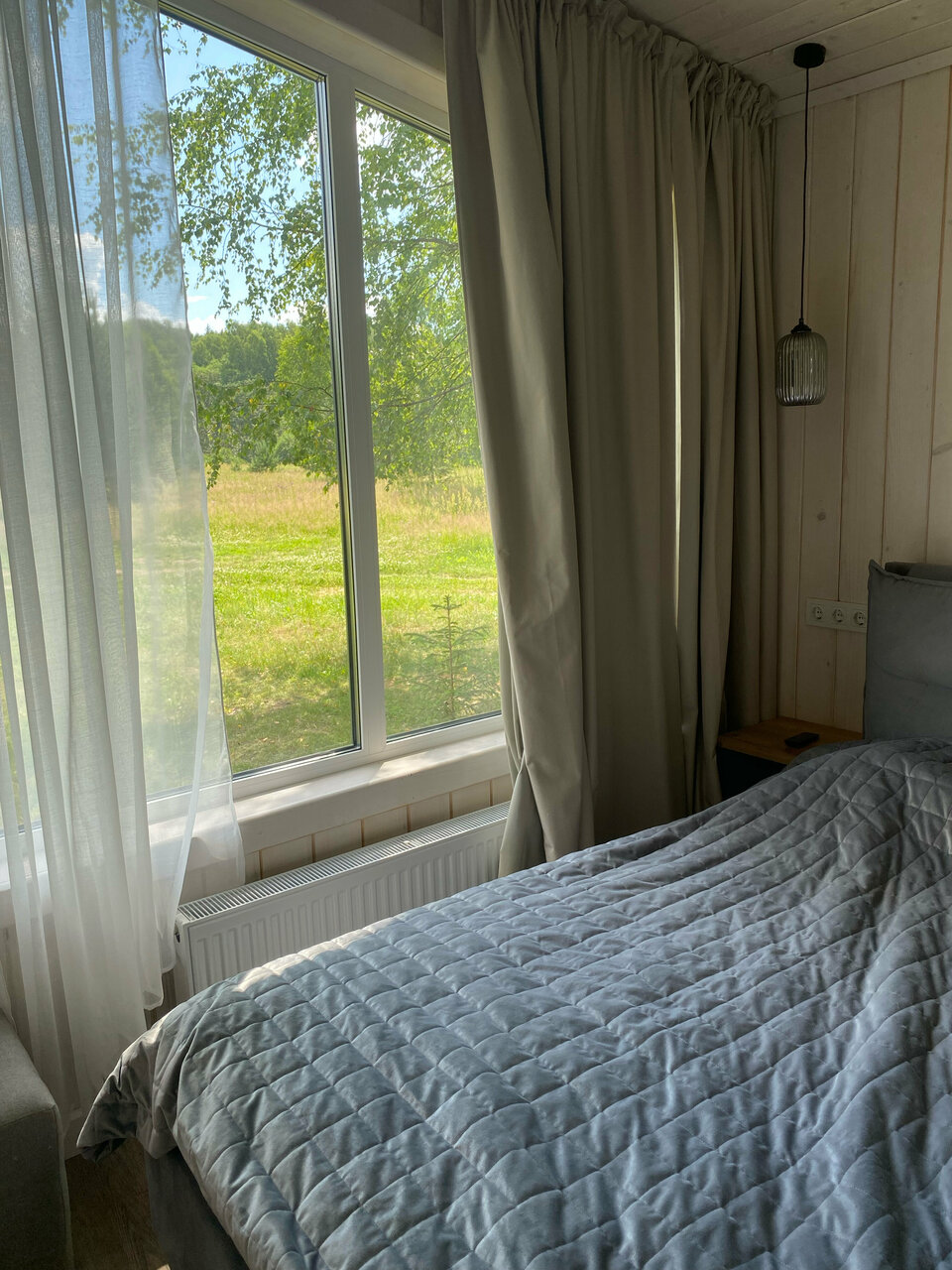 Пять звёзд — за уникальное место. Мы жили в панорамных домиках, их на базе всего два. Глэмпинг в отдалении, за перелеском, так что было приятное ощущение уединённости. На сайте написано про белый песок — не видели такого, разве что тот, что был насыпан между досок, как в песочнице, но это довольно далеко от берега. Сам берег каменистый, но мне понравилось: здесь стараются сохранить нетронутость природы. Большая территория, лес. Качели с видом на Волгу, гамаки (лежать неудобно, надо бы сильнее растянуть). Домики с прекрасным видом, окна большие, но не открываются, из-за этого душно — маленькие окошки-форточки не спасают. Посуды маловато, за такие деньги (7000 и 6500 за домики, в одном допместо было) ждёшь набор для жизни посолиднее. Шампуры платные, зато корзина дров бесплатно. В целом, конечно, мы в восторге от отдыха, но за такие немалые деньги ожидания были выше — в плане организации, удобства и т.д. Отдых здесь рекомендую! Полный детокс от суеты обеспечен.