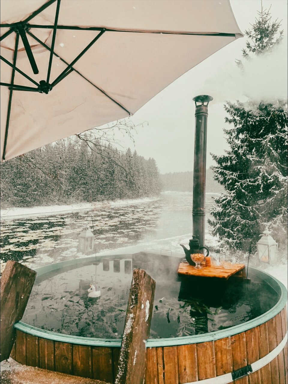 - Романтичная атмосфера (иллюминация, купель, баня).