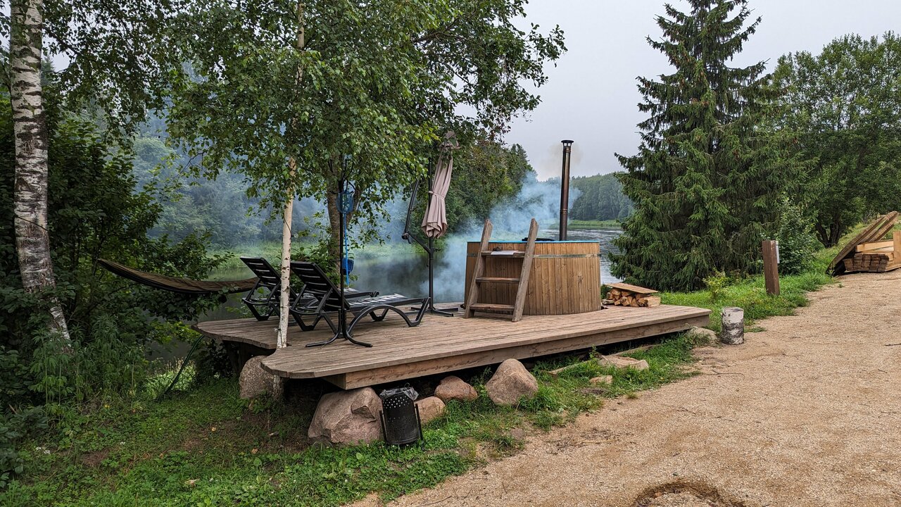 Природа замечательная. Домики, глемпинги и для любителей палатки. Кафе нет, кормят в беседке. Интернета нет, и это настоящий отдых. Спа зона ещё в разработке, но уже есть набережная, купель, пляж и баня. Отдохнули хорошо. Из минусов, нет подсветки тропинок, вечером жутковато. При заезде не объяснили как включается отопление, вещи со сплава увезли мокрые… Уборка также оставляет желать лучшего. Курорт в самом начале пути и пусть у них получится. Природа там удивительная. Думаю необходим ещё небольшой магазинчик для мелочей, которые забыли.