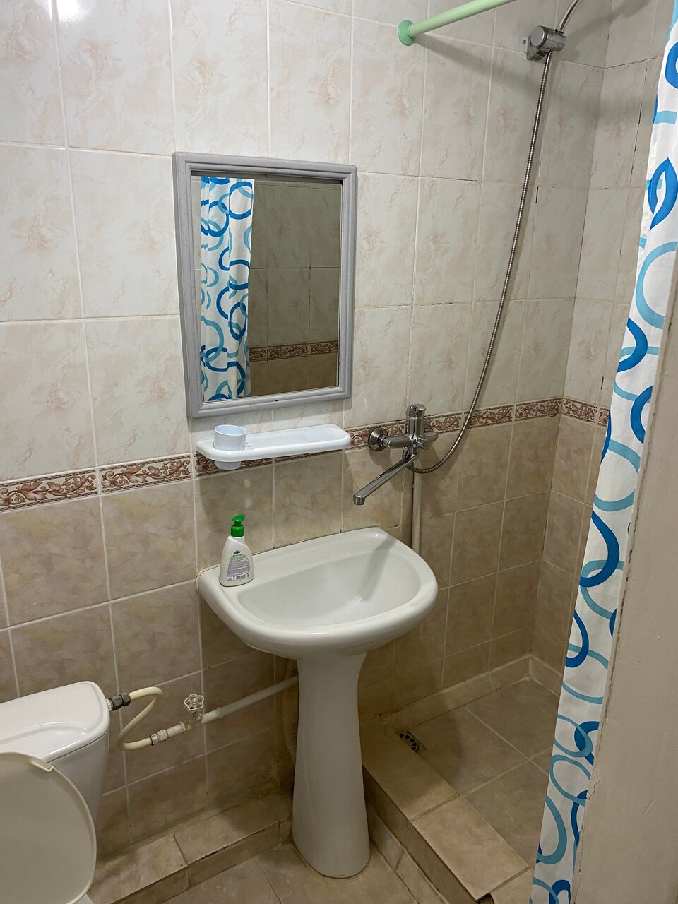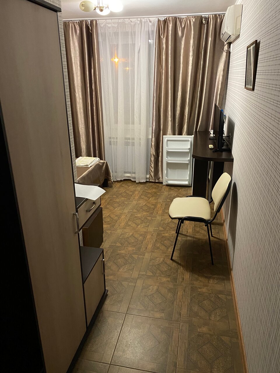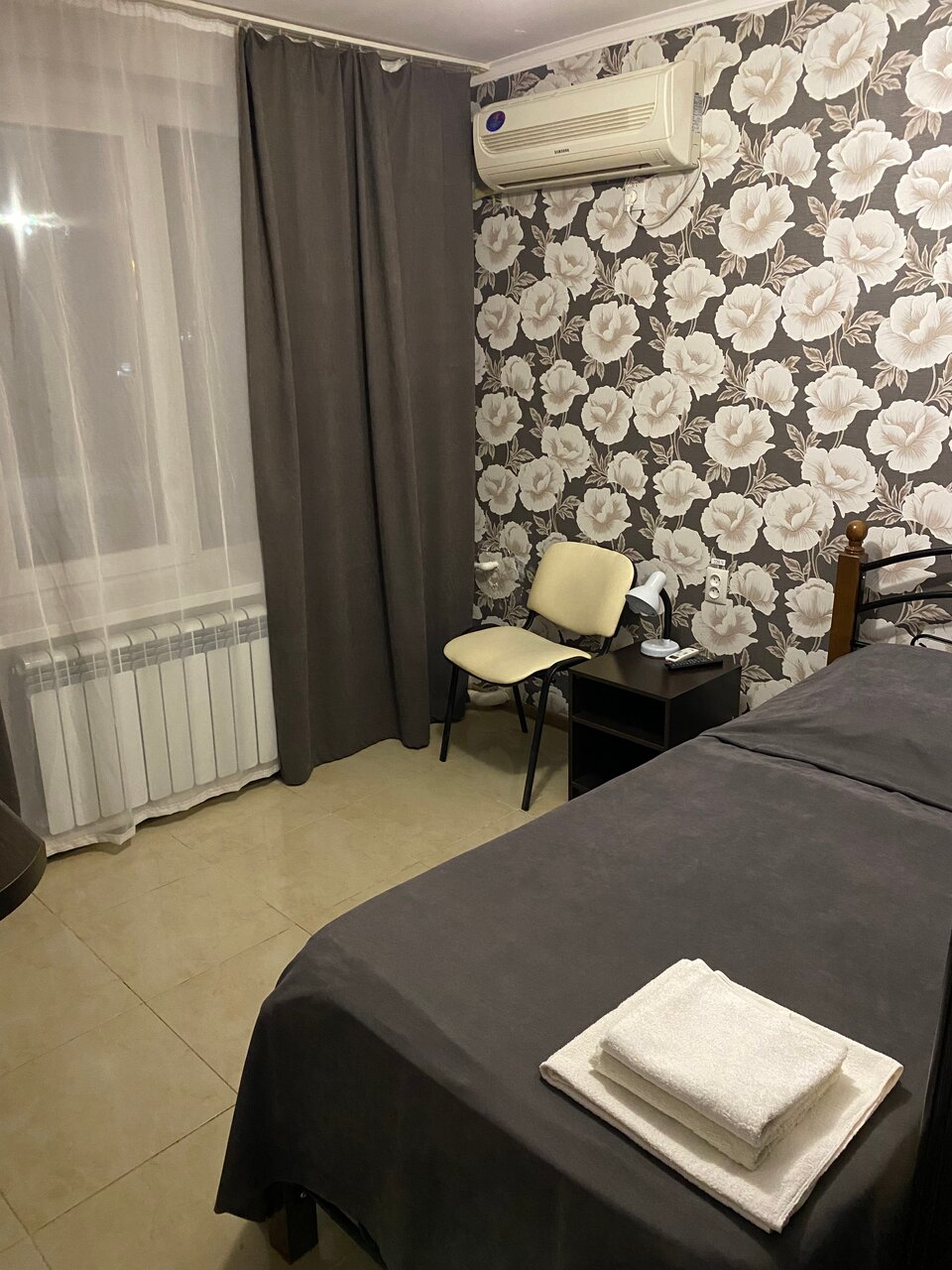 Были проездом.. Снимали 4х местный номер.. В номере 4 кровати, отдельная комната с чайником , холодильником, диваном и не понятно зачем посудный шкаф) санузел совместный… Очень Маленький.. Кондиционер имеется..