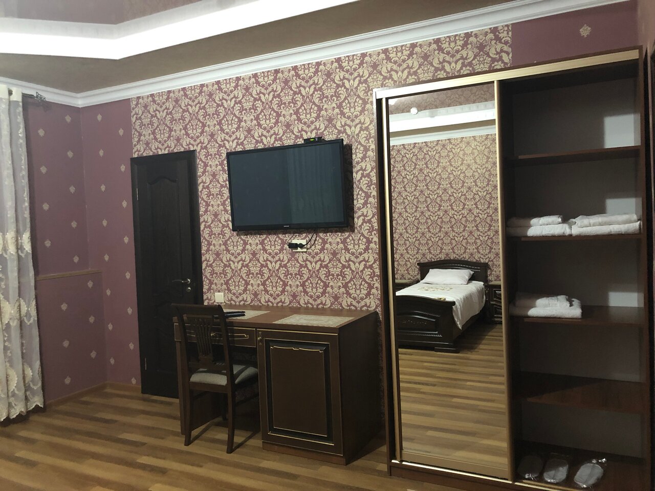 Если вы планируете здесь отдохнуть в командировке или остановиться, чтоб выспаться ночью, то это точно не получится сделать, шумоизоляция — 0, сама гостиница под крышей, обшитой металлом, слышно все проезжающие машины, как будто-то ты спишь на улице, но это ладно, внизу стоит кафе/а-ля клуб, а-ля кальянная, а-ля ресторан — музыка и пьяный ор стоит до поздней ночи, а потом видимо эта же гулянка перемешается в соседние номера и продолжают уже шуметь в другом тоне, а так как шумоизоляции нет, чувствуешь себя в публичном доме. В общем если выспаться, то это не сюда, у меня за ночь получилось это сделать с короткими урывками пару раз. Сам номер ничего, вода течёт плохо, имеет специфичный технический запах, на счёт качества уборки никто не заморачивается. Не знаю кто писал предыдущие отзывы, но эта гостиница теперь первая в моем антирейтинге