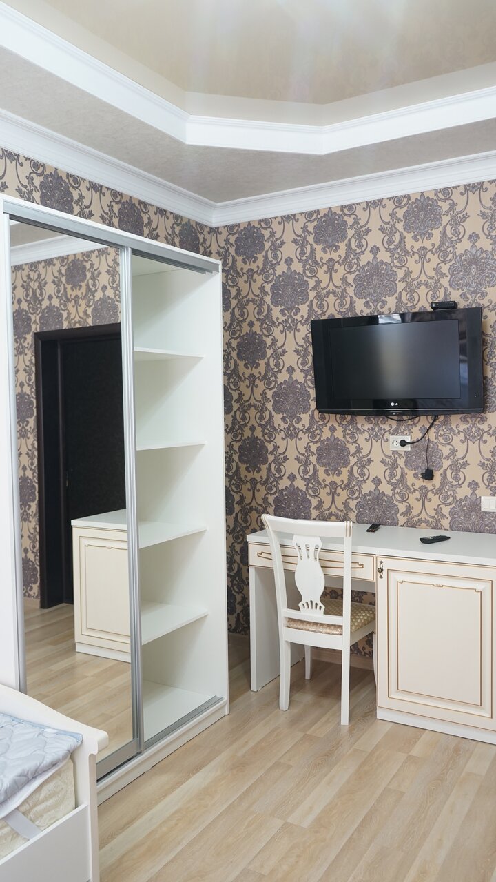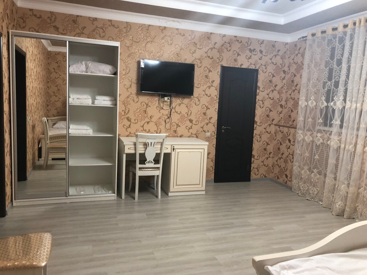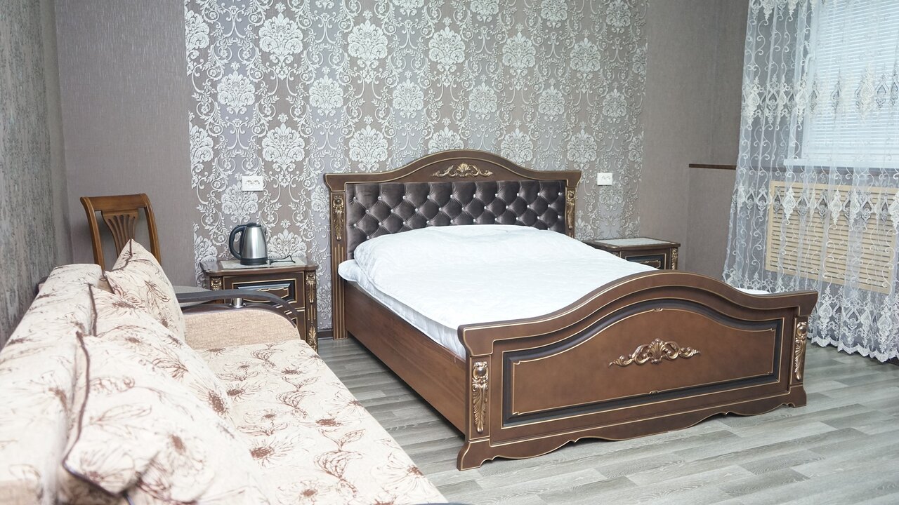 Двухкомнатный номер с двуспальной кроватью 180×200 или двумя полутораспальными кроватями (по запросу). В гостевой комнате раскладной диван.Максимальная вместимость номера 2+1.